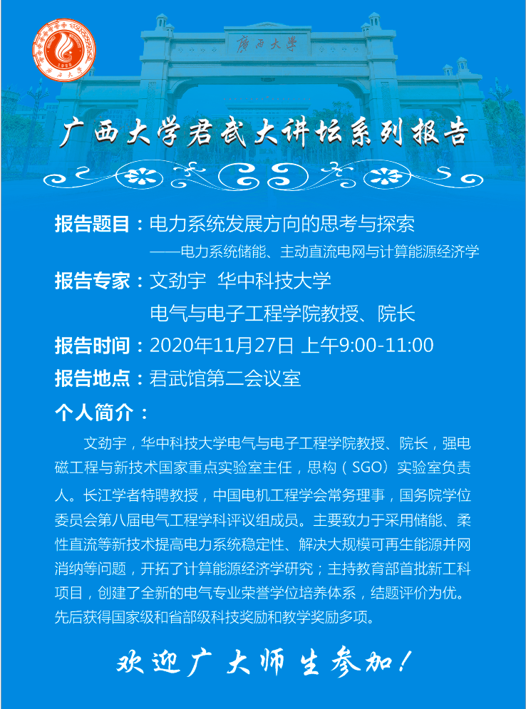 beat365正版唯一官方网站君武大讲坛系列报告:电力系统发展方向的思考与探索—电力系统储能、主动直流电网与计算能源经济学