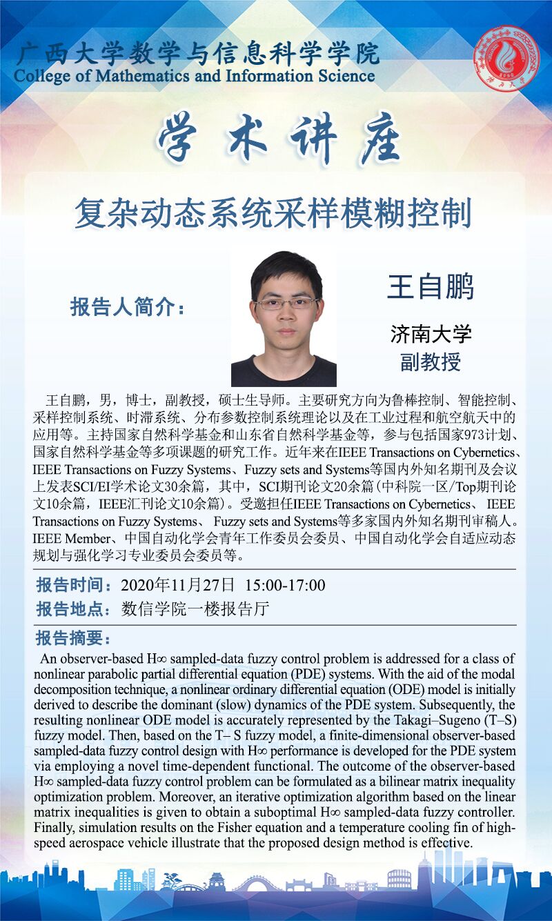 数学与信息科学学院学术讲座:复杂动态系统采样模糊控制