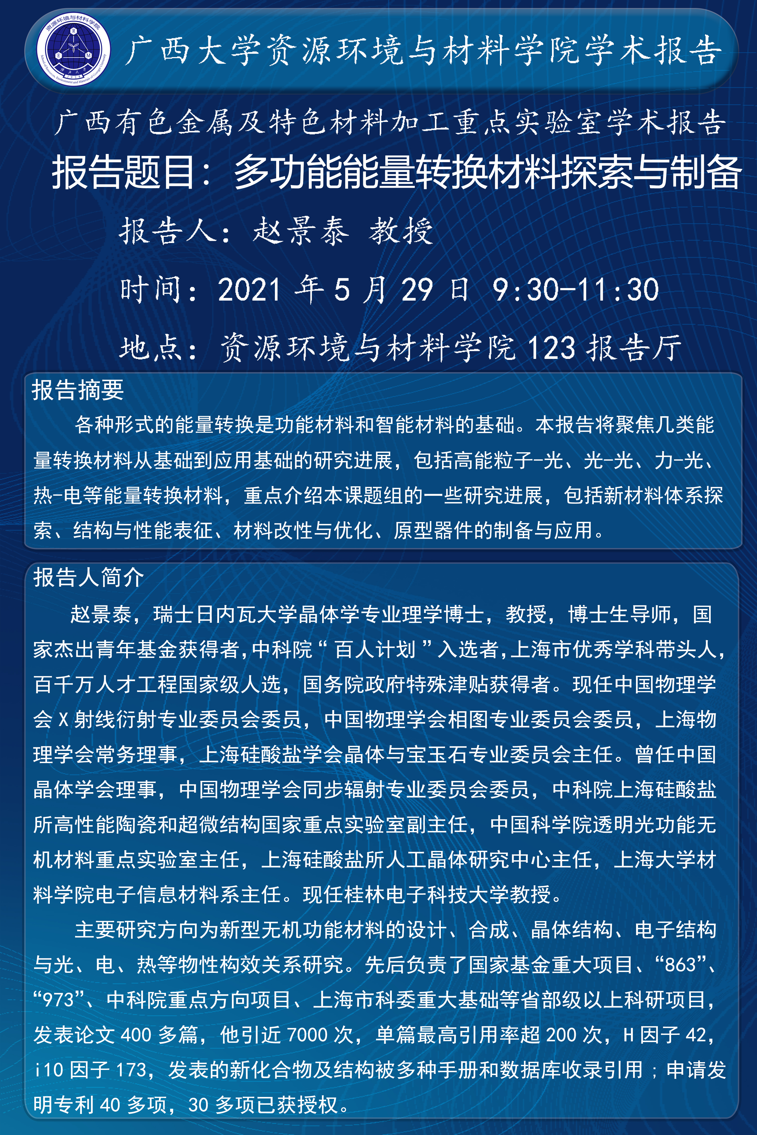 资源环境与材料学院123报告厅