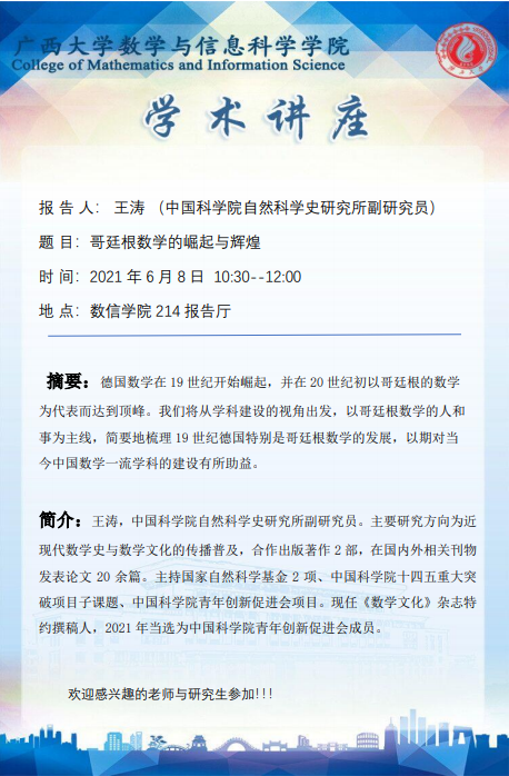 数学与信息科学学院学术报告:哥廷根数学的崛起与辉煌