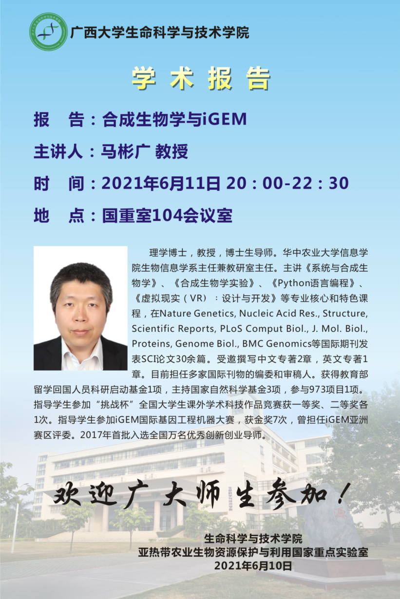 生命科学与技术学院学术报告:合成生物学与iGEM