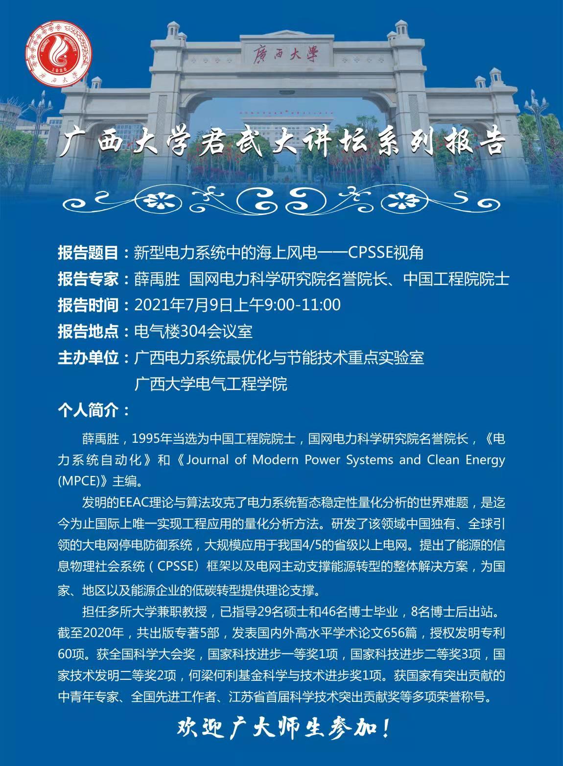 电气工程学院君武大讲堂系列报告:新型电力系统中的海上风电—CPSSE视角