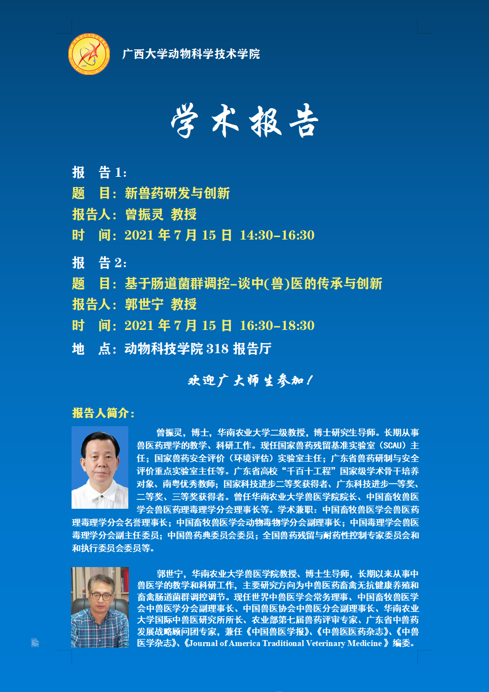 动物科学技术学院学术报告:新兽药研发与创新;基于肠道菌群调控-谈中(兽)医的传承与创新