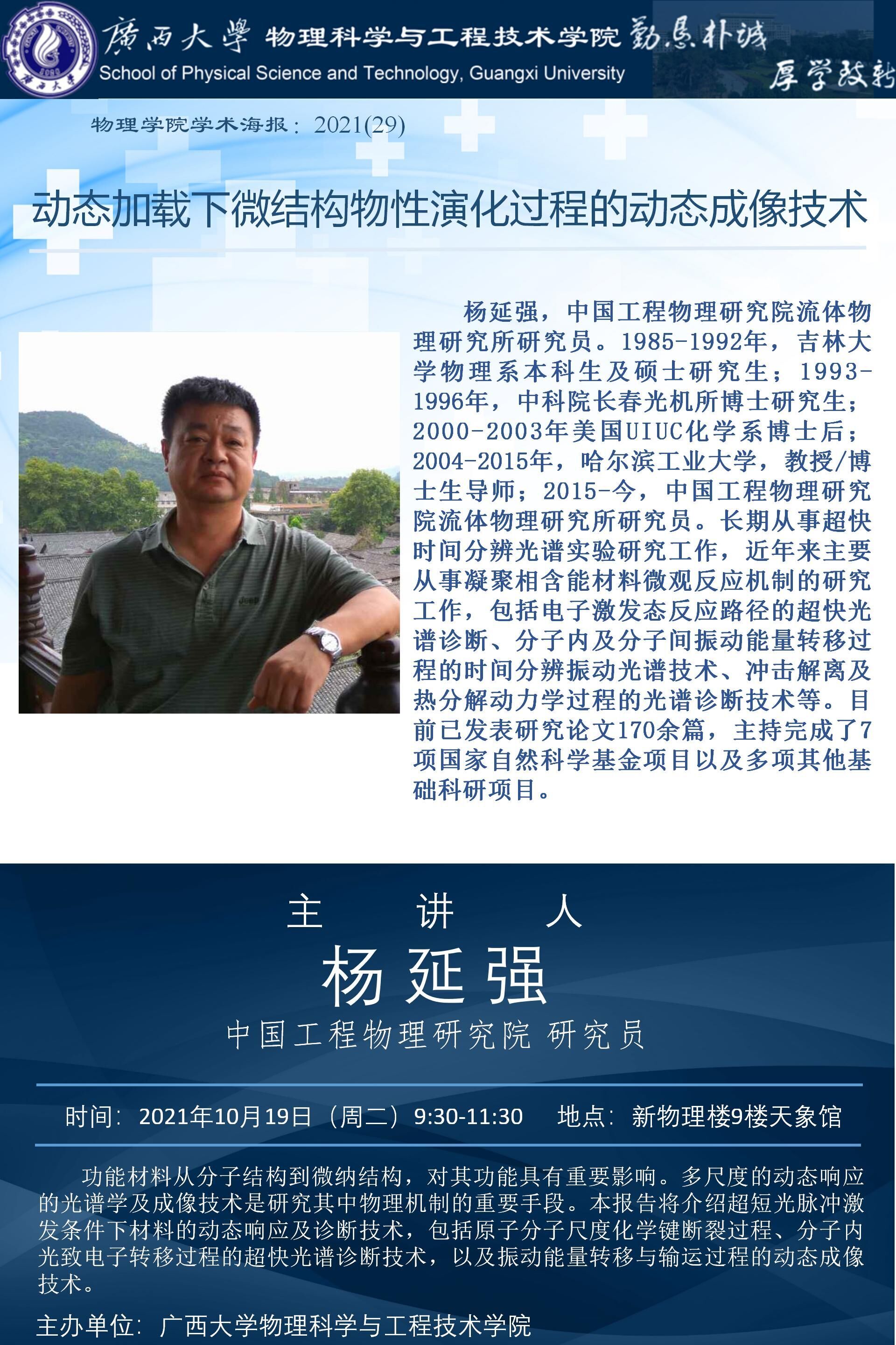 物理科学与工程技术学院学术报告:动态加载下微结构物性演化过程的动态成像技术