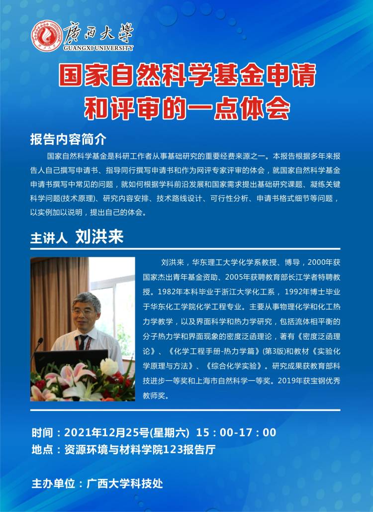 科技处专题学术活动:国家自然科学基金申请和评审的一点体会