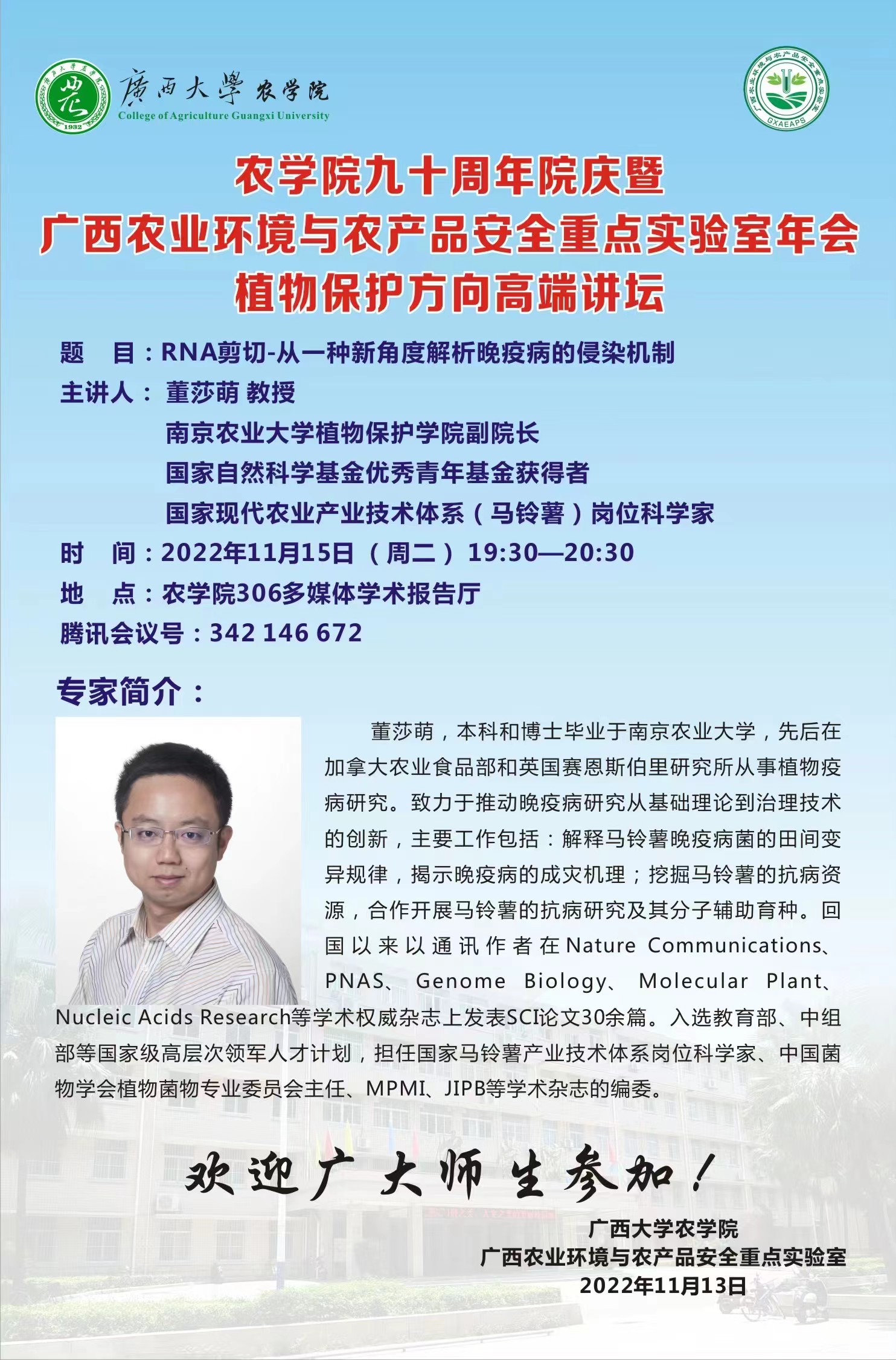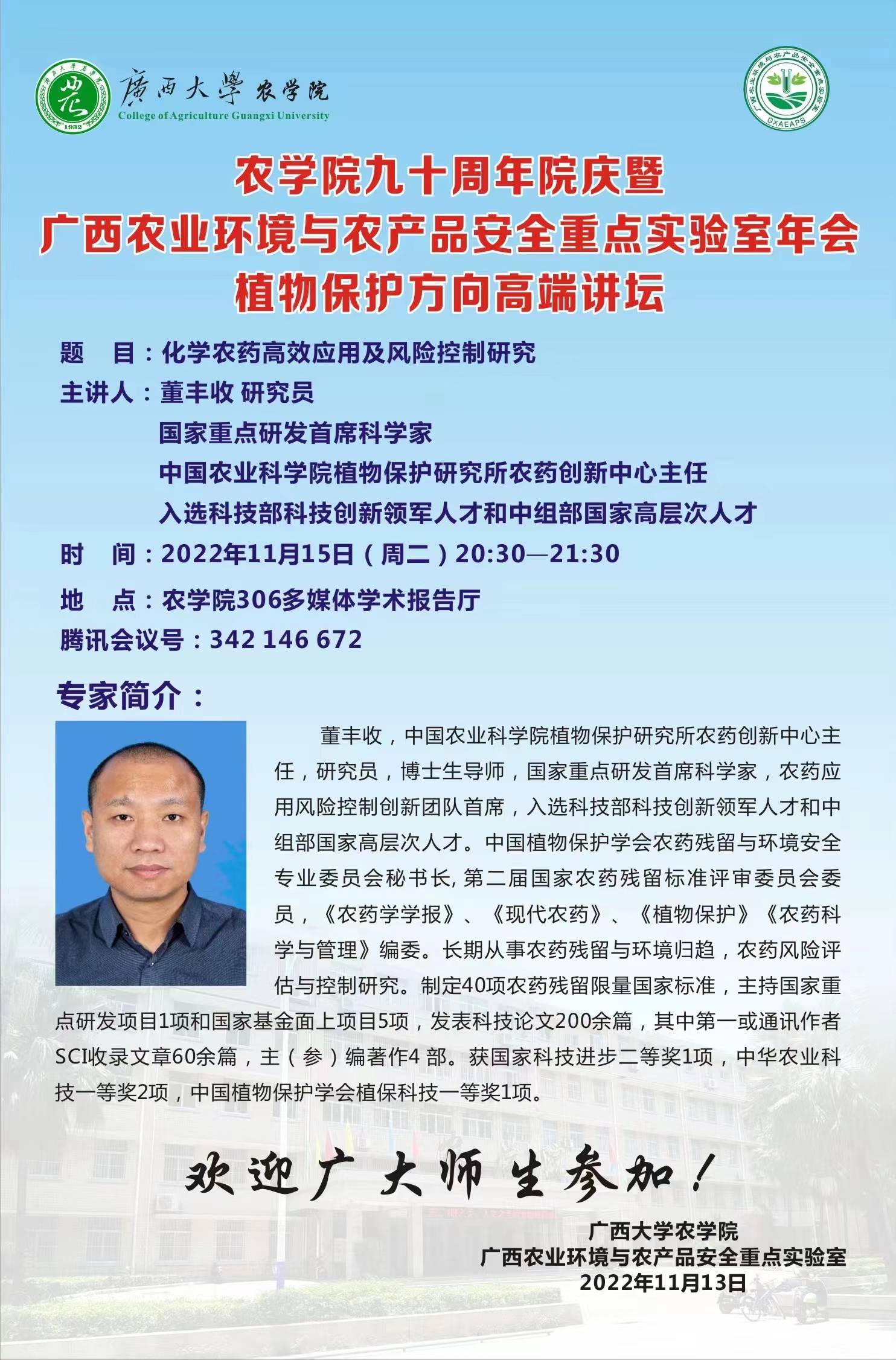 农学院九十周年院庆暨广西农业环境与农产品安全重点实验室年会植物保护方向高端讲坛