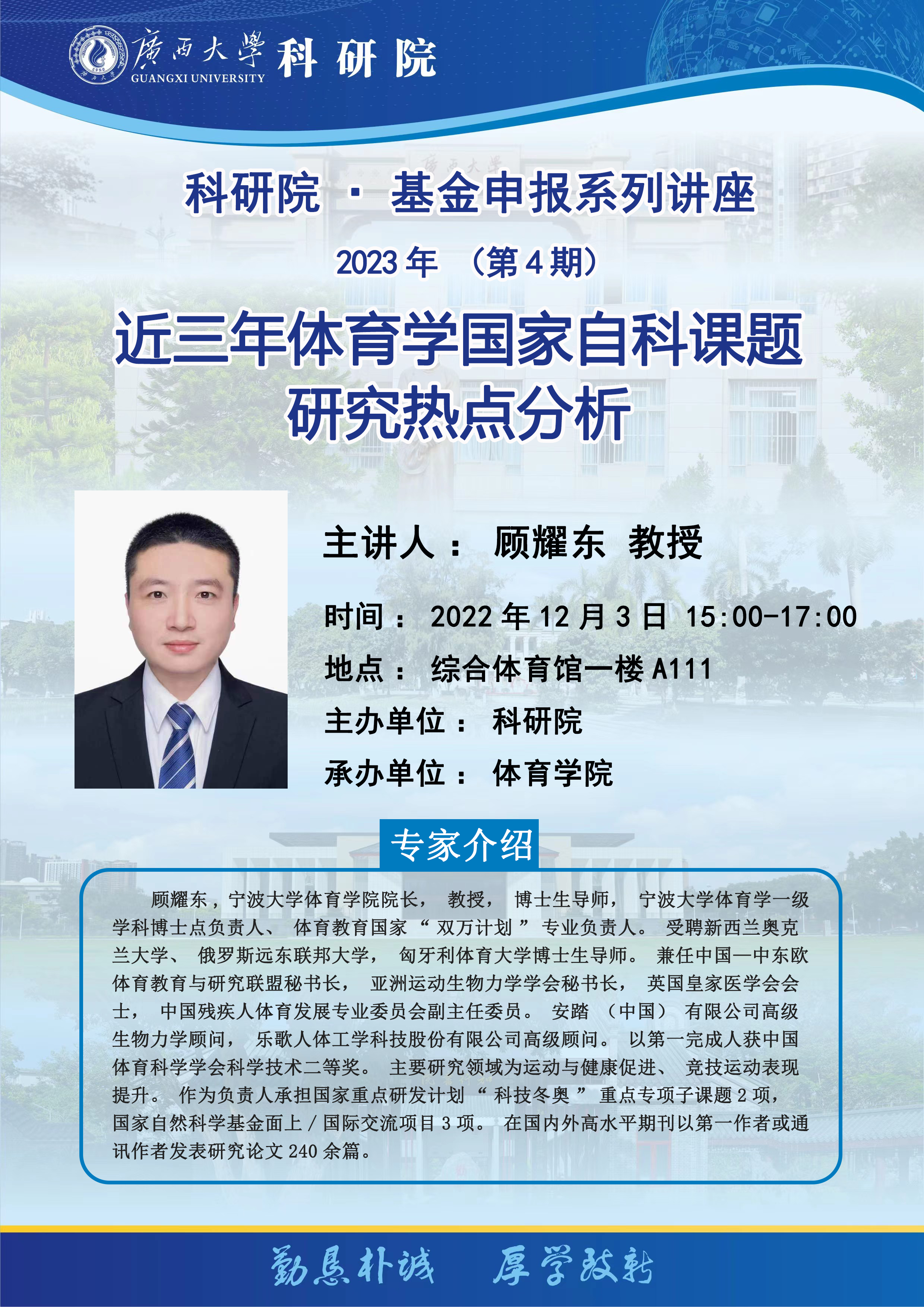 科研院·基金申报系列讲座2023年(第4期)近三年体育学国家自科课题研究热点分析