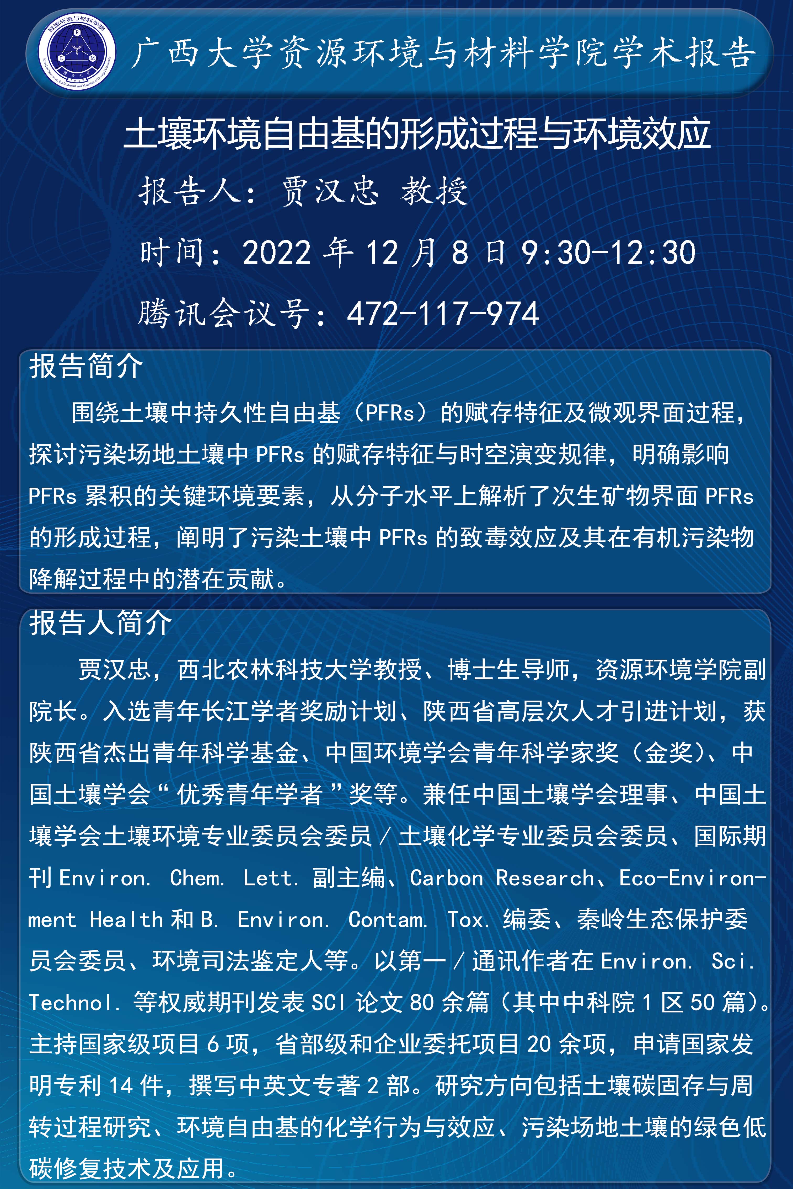 资源环境与材料学院学术报告 土壤环境自由基的形成过程与环境效应