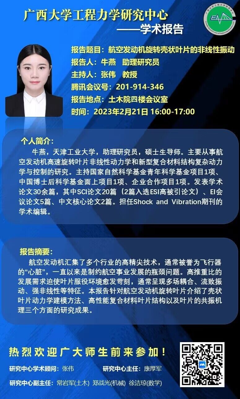 beat365正版唯一官方网站工程力学研究中心学术报告:航空发动机旋转壳状叶片的非线性振动