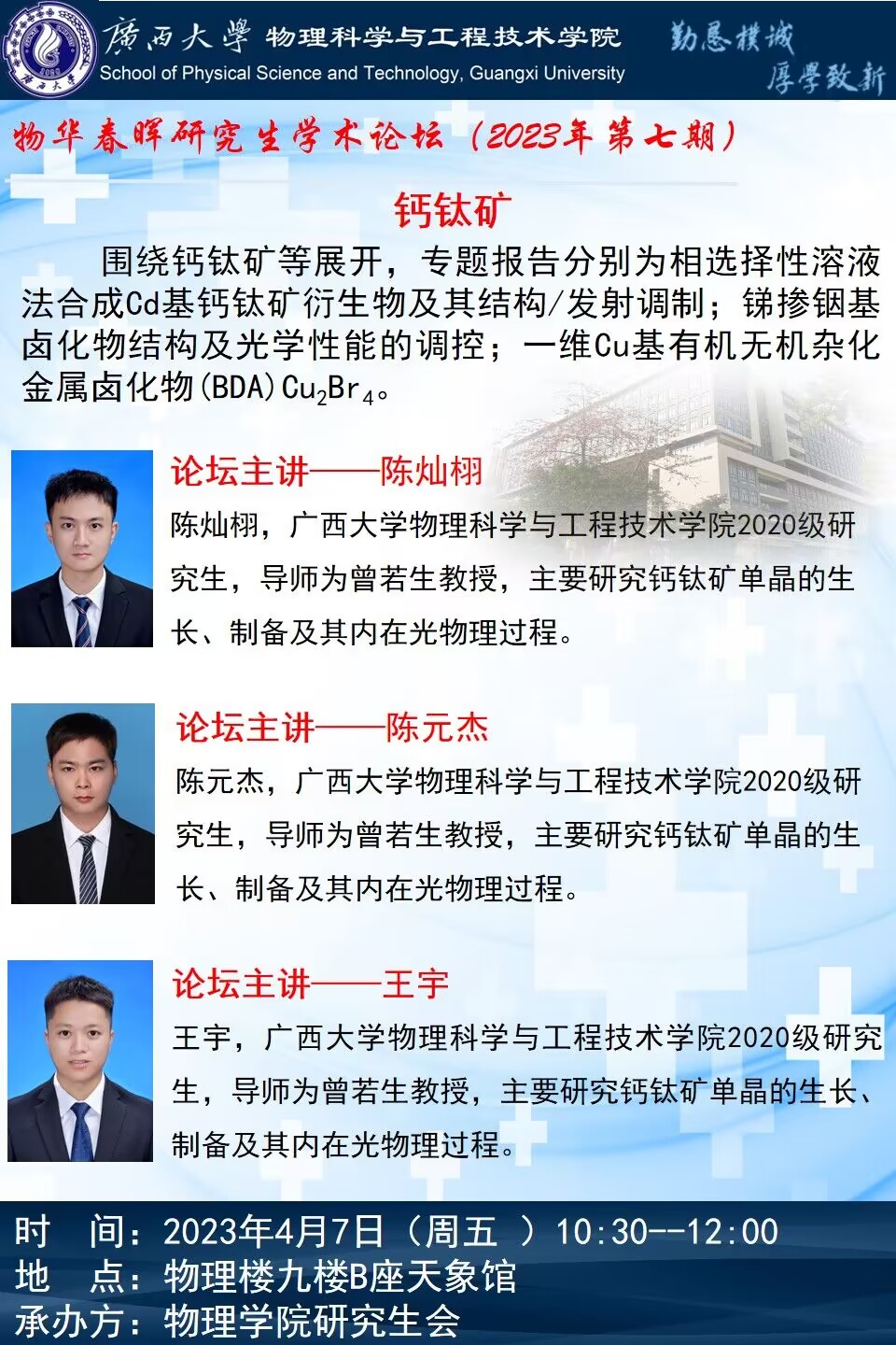 物理学院2023年物华春晖学术论坛(第七期):钙钛矿