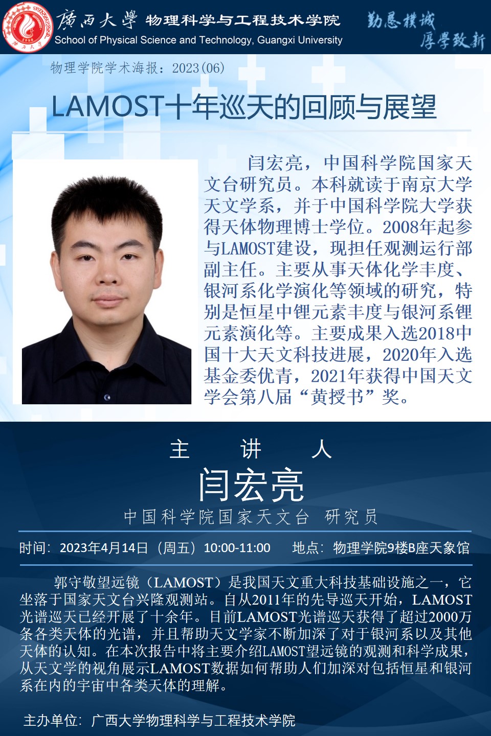 主讲人 闫宏亮 地址 物理学院9楼B座天象馆