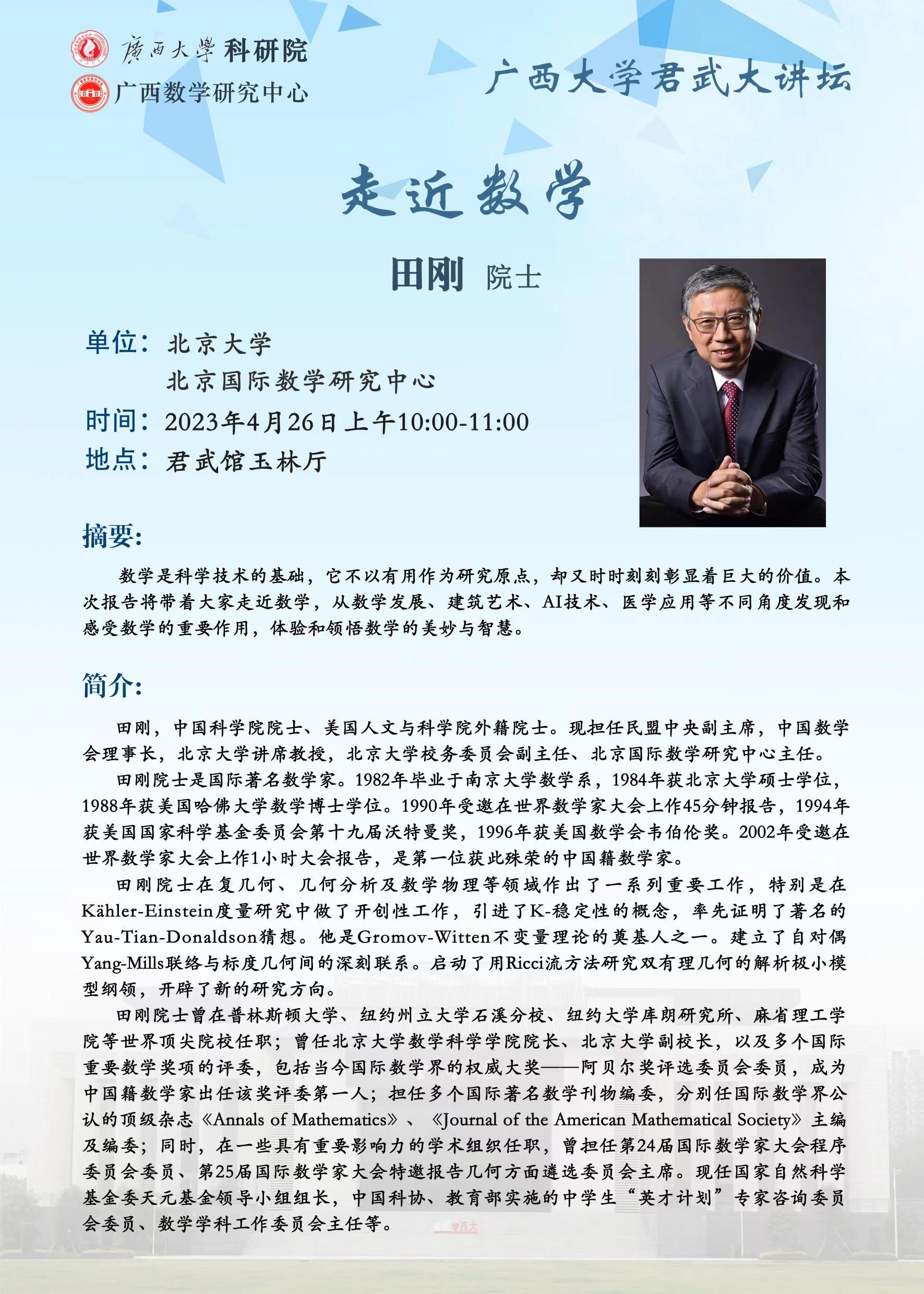 beat365正版唯一官方网站君武大讲坛:走近数学