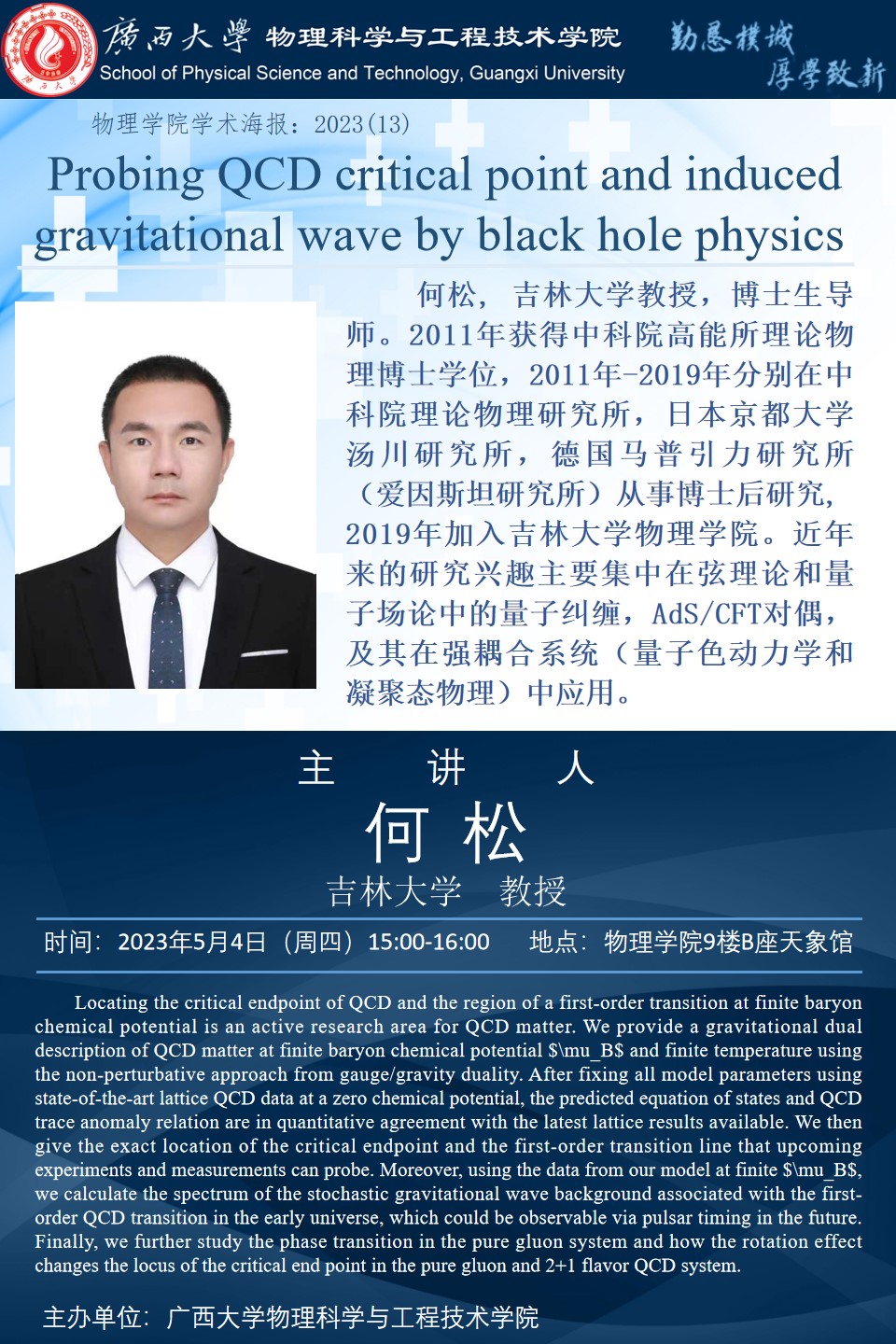物理学院2023年学术报告系列之13:Probing QCD critical point and induced gravitational wave by black hole physics