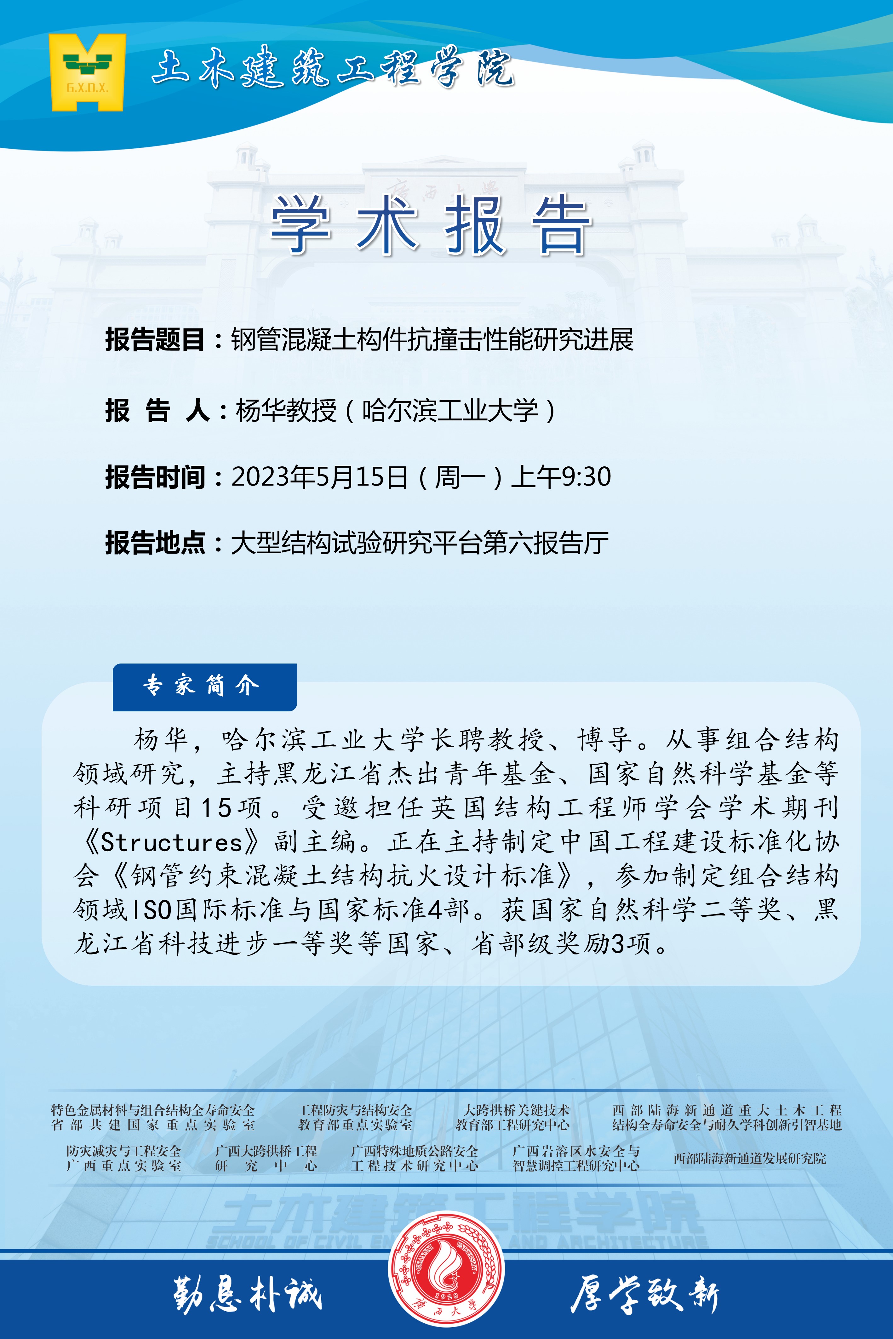 土木建筑工程学院学术报告:中空夹层钢管混凝土结构的力学性能与设计原理