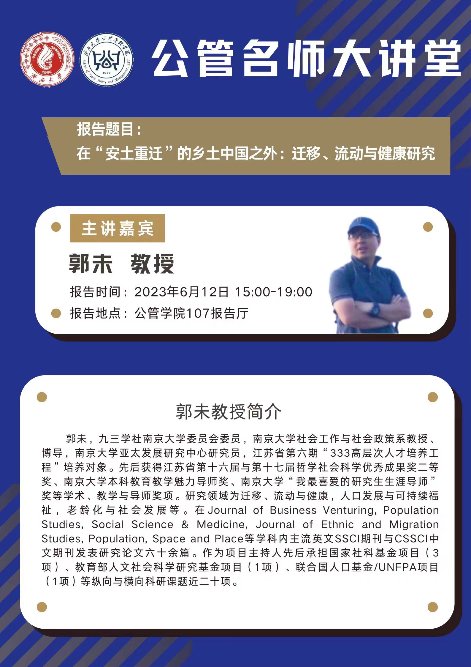 公管名师大讲堂:在“安土重迁”的乡土中国之外:迁移、流动与健康研究