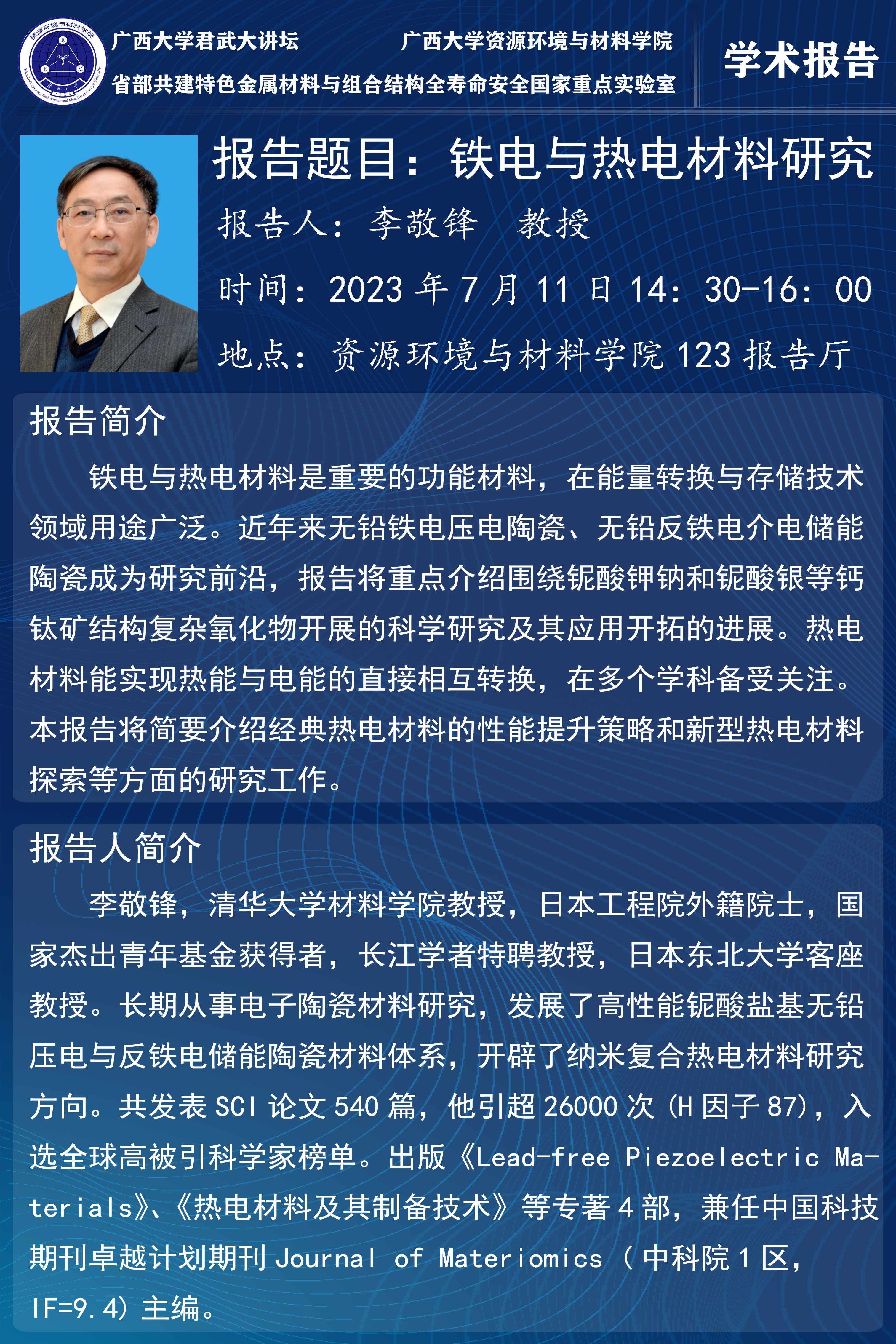 beat365正版唯一官方网站君武大讲坛:铁电与热电材料研究