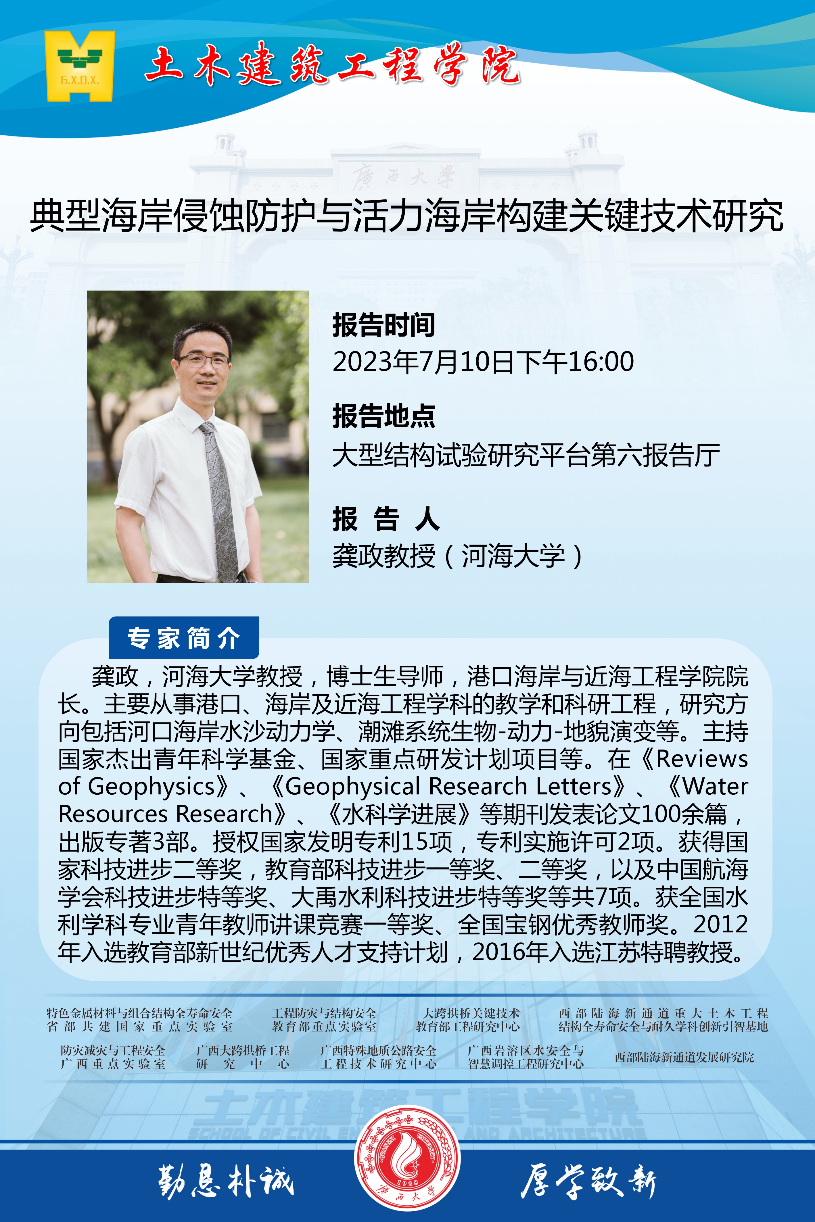 土木建筑工程学院学术讲座:典型海岸侵蚀防护与活力海岸构建关键技术研究