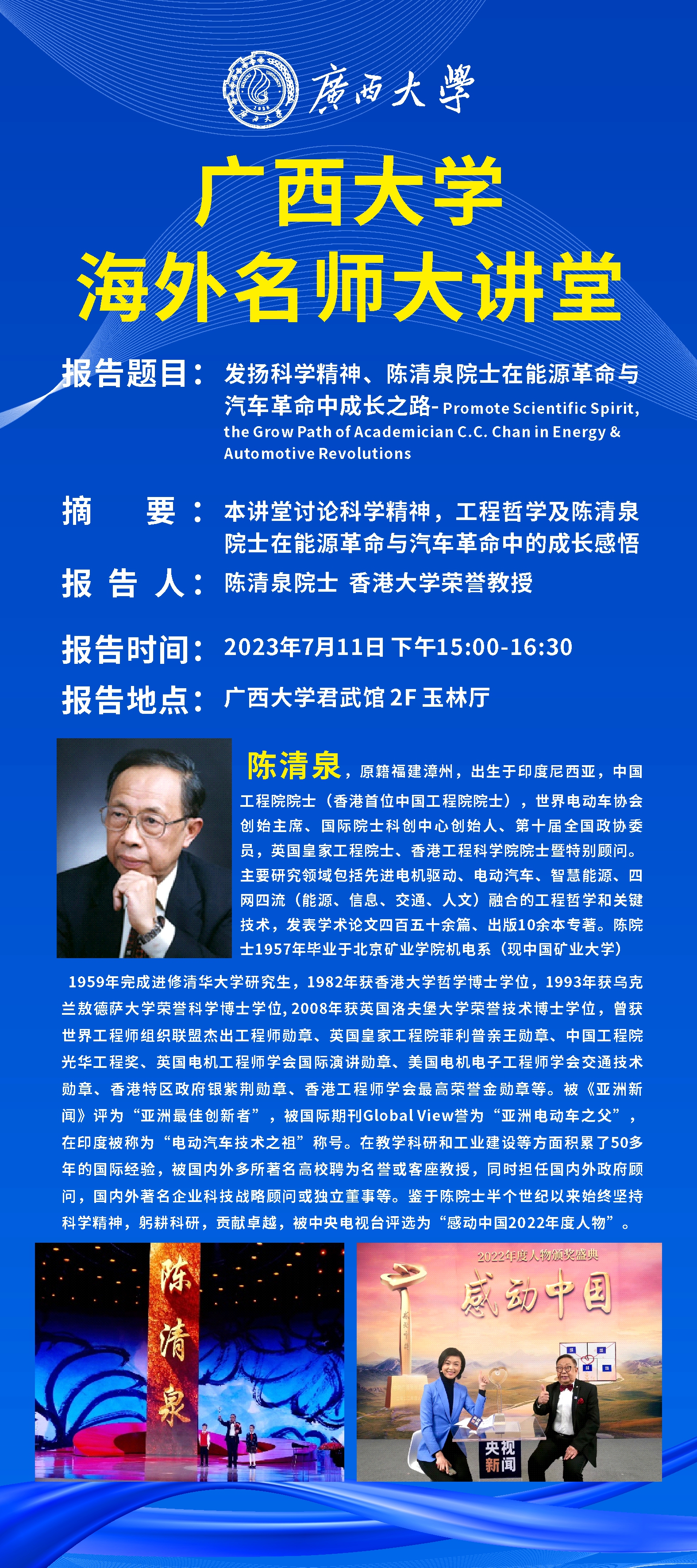 beat365正版唯一官方网站海外名师大讲堂:发扬科学精神、陈清泉院士在能源革命与汽车革命中成长之路