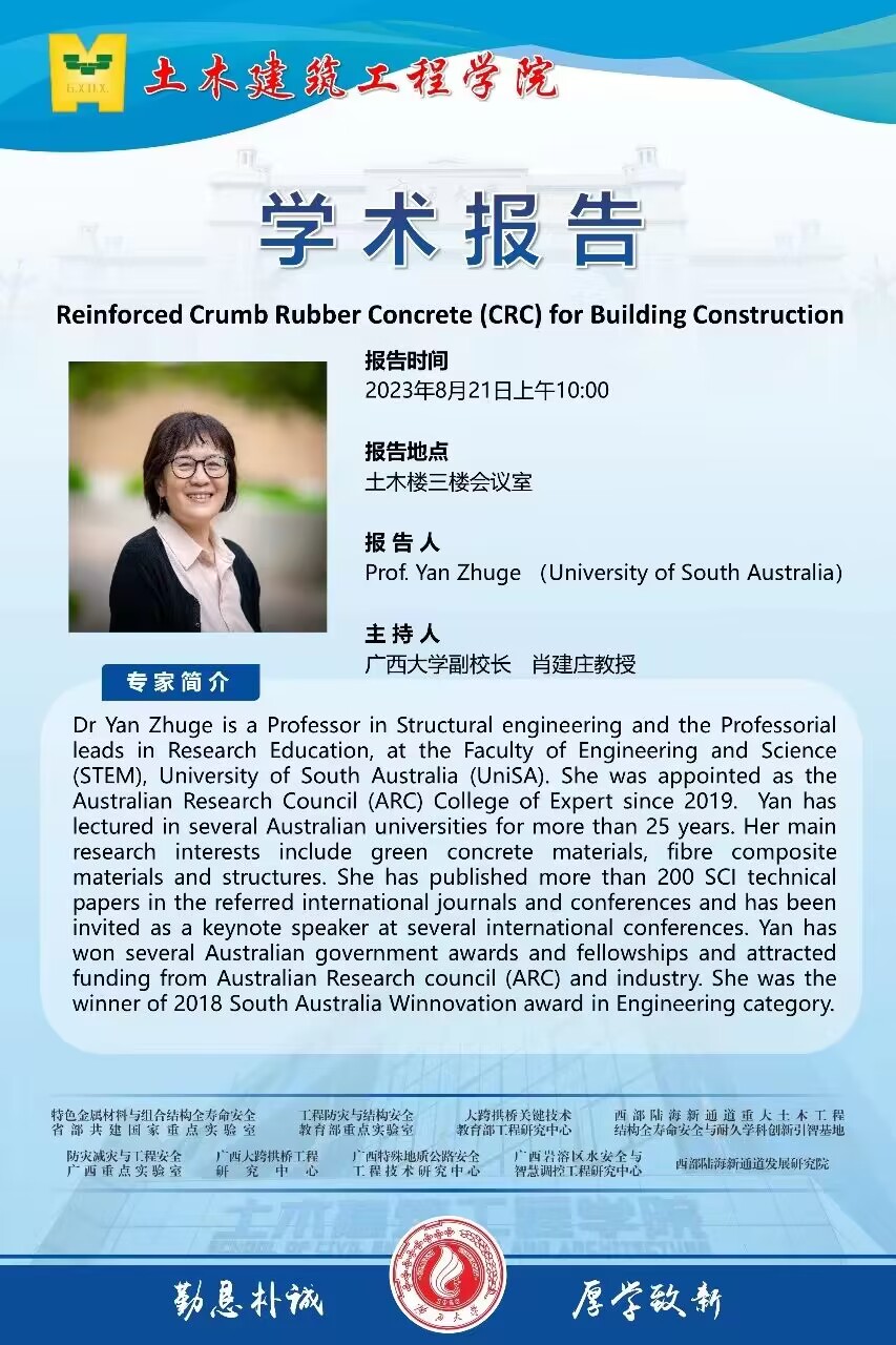 土木学院学术报告:Reinforced Crumb Rubber Concrete (CRC) for Building Construction