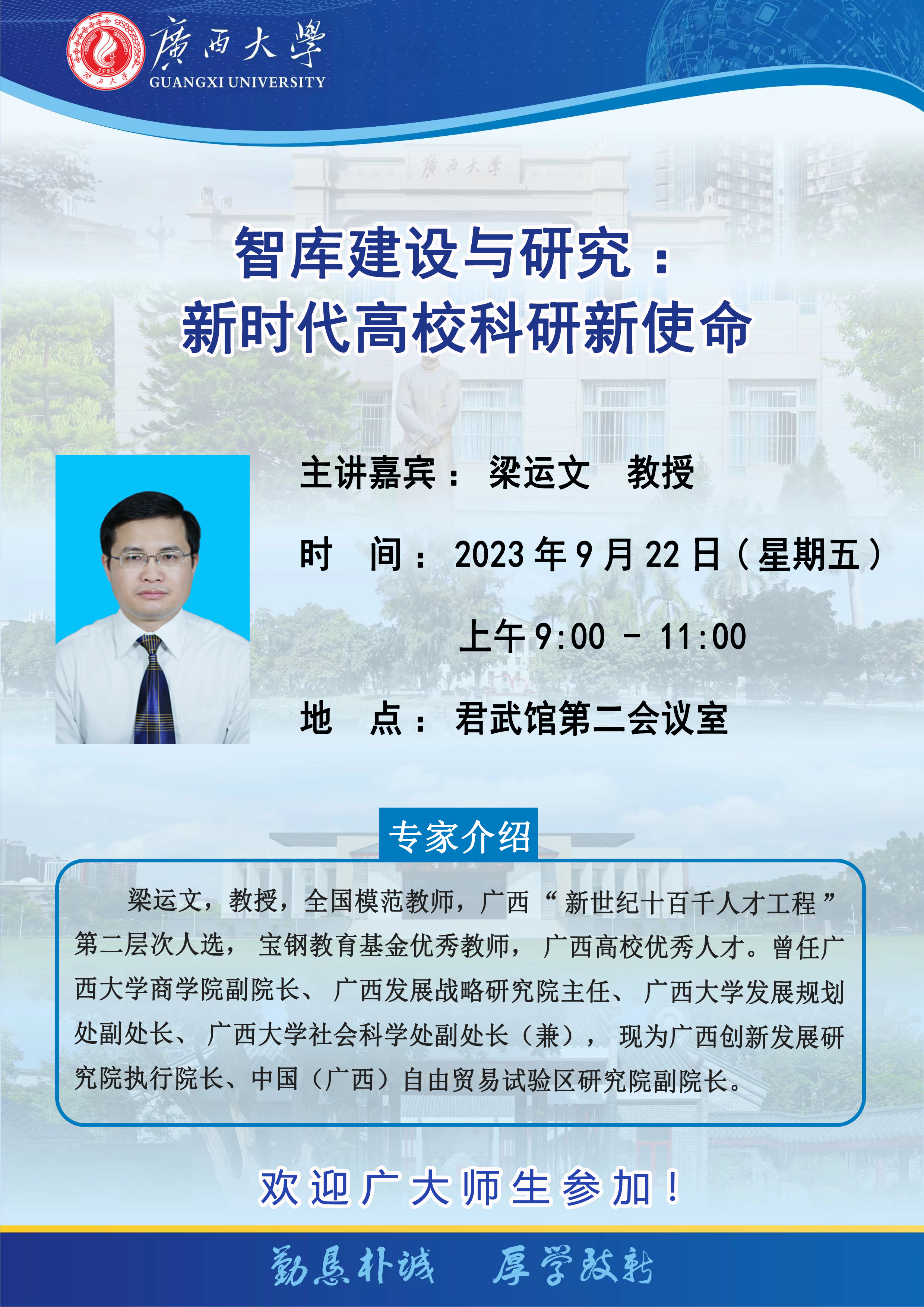 梁运文,教授,全国模范教师,广西“新世纪十百千人才工程”第二层次人选,宝钢教育基金优秀教师,广西高校优秀人才。曾任beat365正版唯一官方网站商学院副院长、广西发展战略研究院主任、beat365正版唯一官方网站发展规划处副处长、beat365正版唯一官方网站社会科学处副处长(兼),现为广西创新发展研究院执行院长、中国(广西)自由贸易试验区研究院副院长。