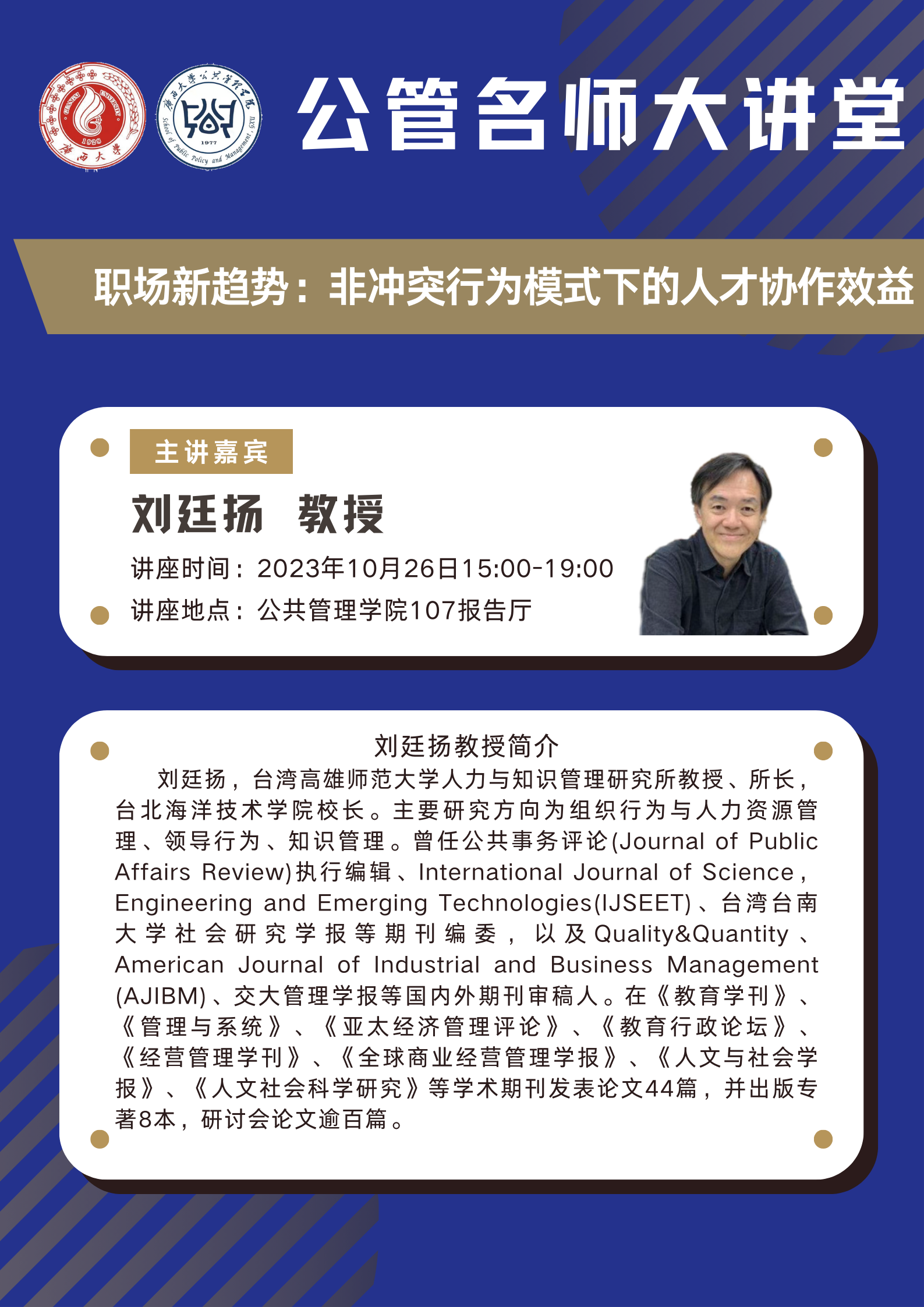 公共管理学院名师大讲堂:职场新趋势----非冲突行为模式下的人才协作效益
