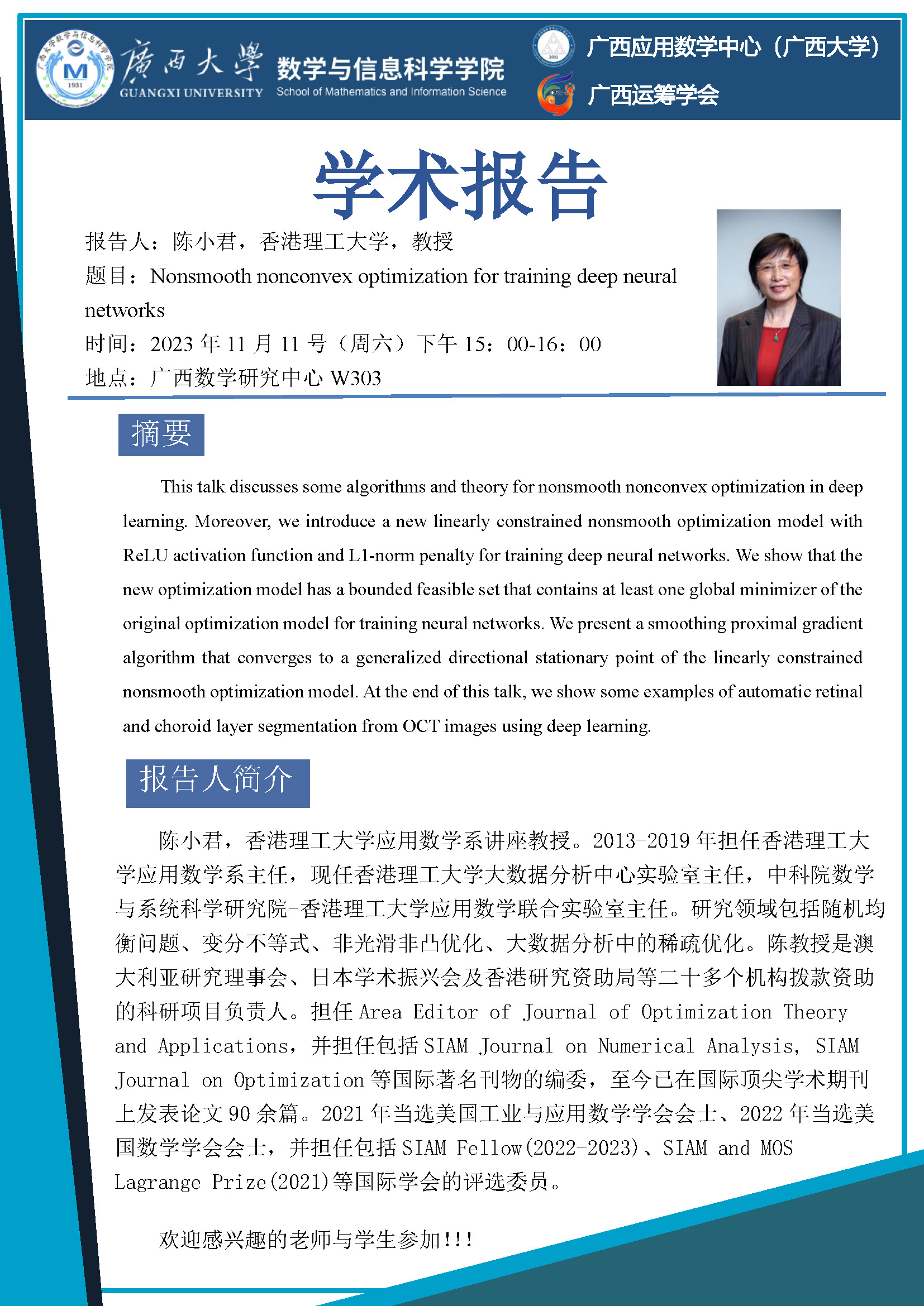 数信学院学术报告:Nonsmooth nonconvex optimization for training deep neural networks