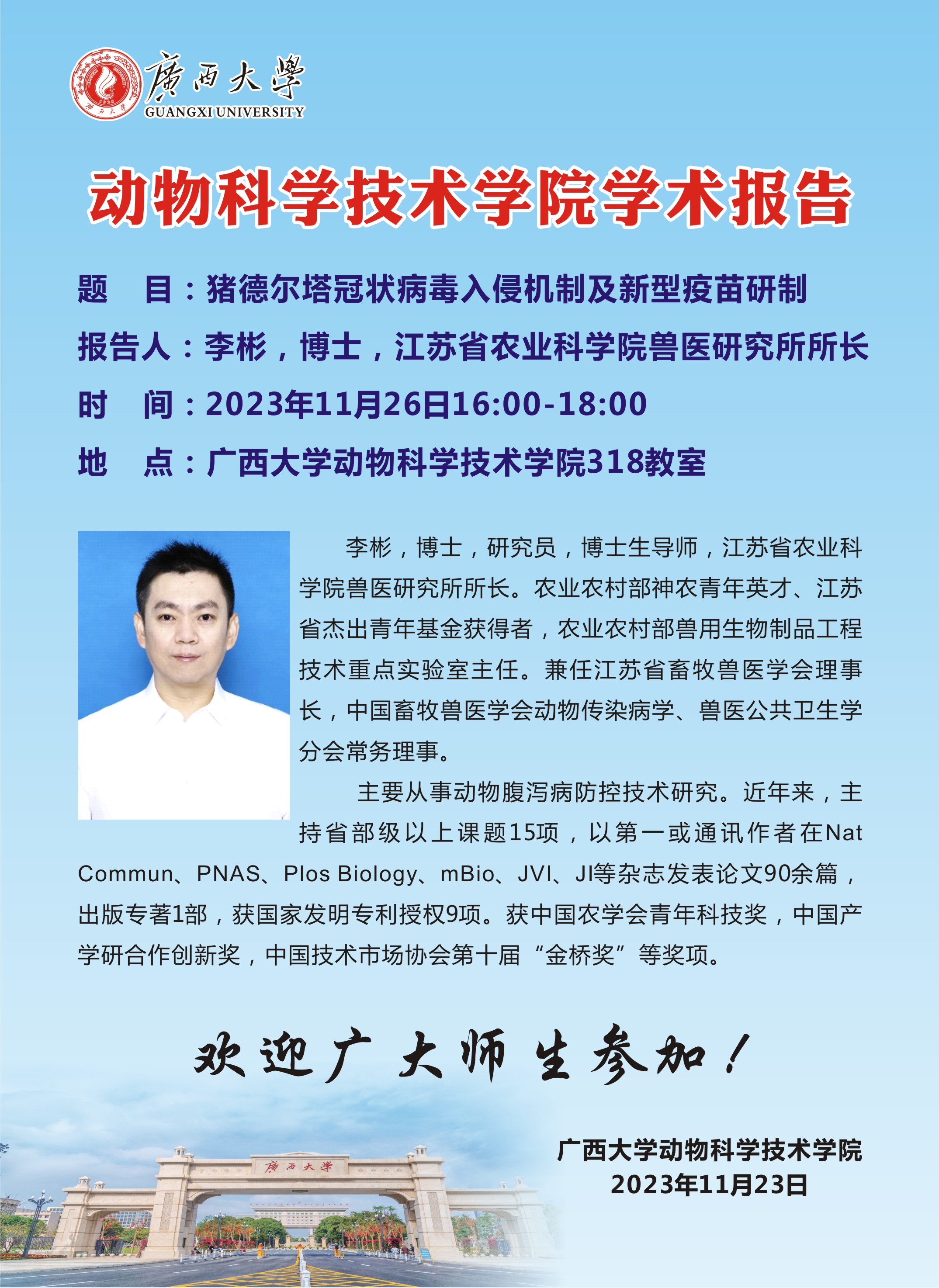 动物科学技术学院学术报告:猪德尔塔冠状病毒入侵机制及新型疫苗研制