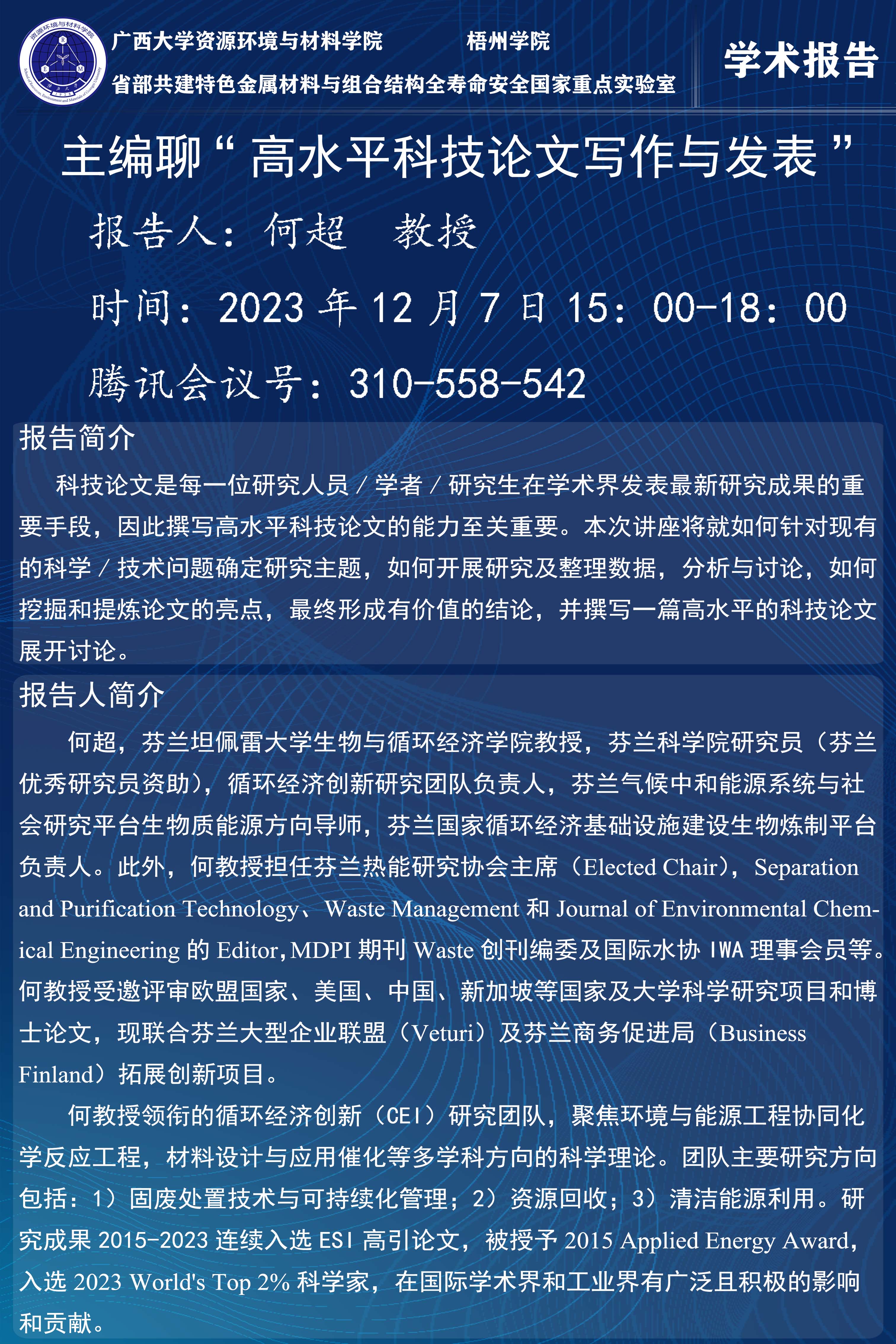 资源环境与材料学院学术报告:主编聊“高水平科技论文写作与发表”