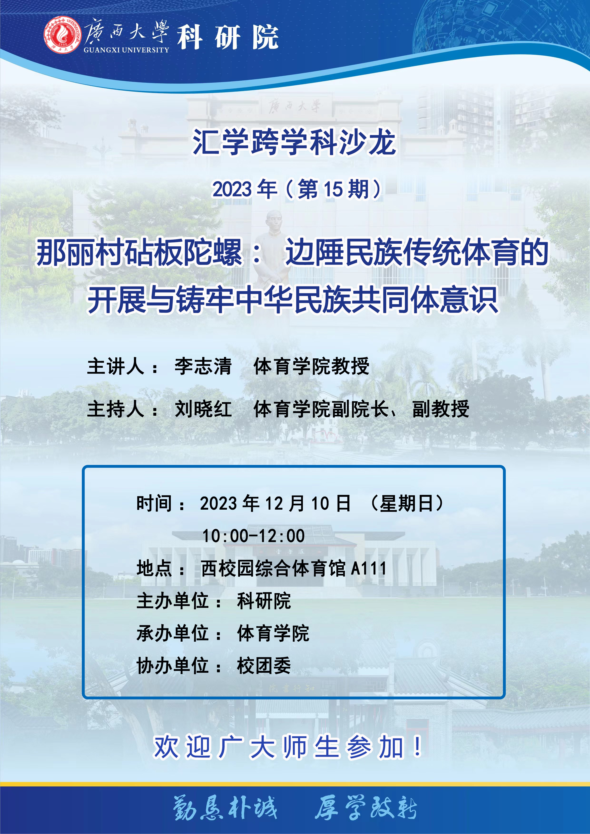 汇学跨学科沙龙(第15期):那丽村砧板陀螺----边陲民族传统体育的开展与铸牢中华民族共同体意识
