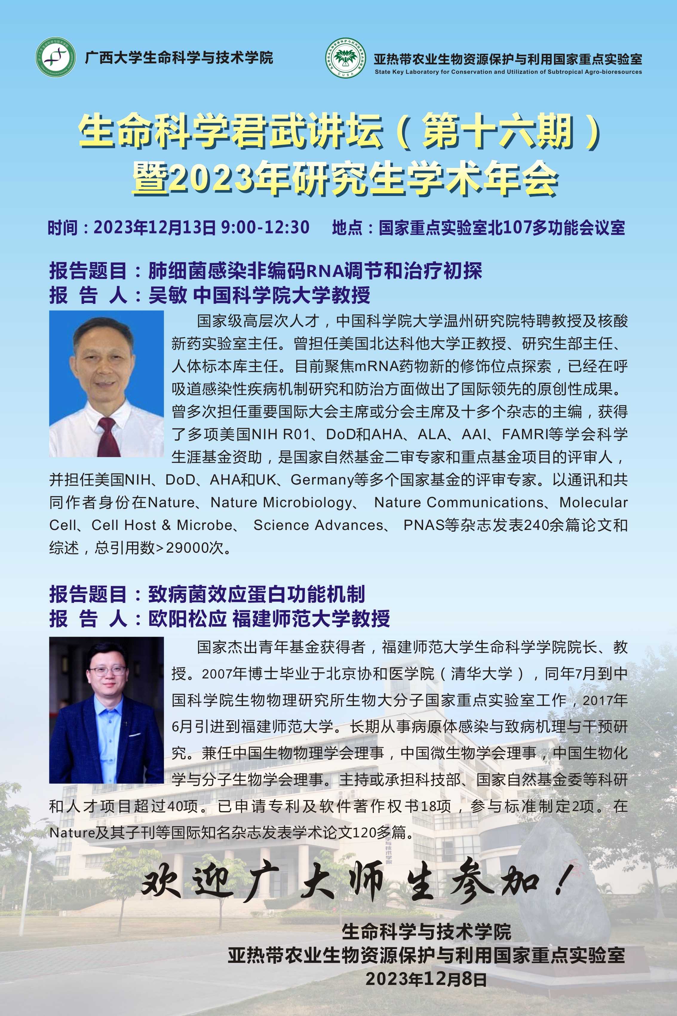 生命科学君武讲坛(第十六期)暨2023年研究生学术年会