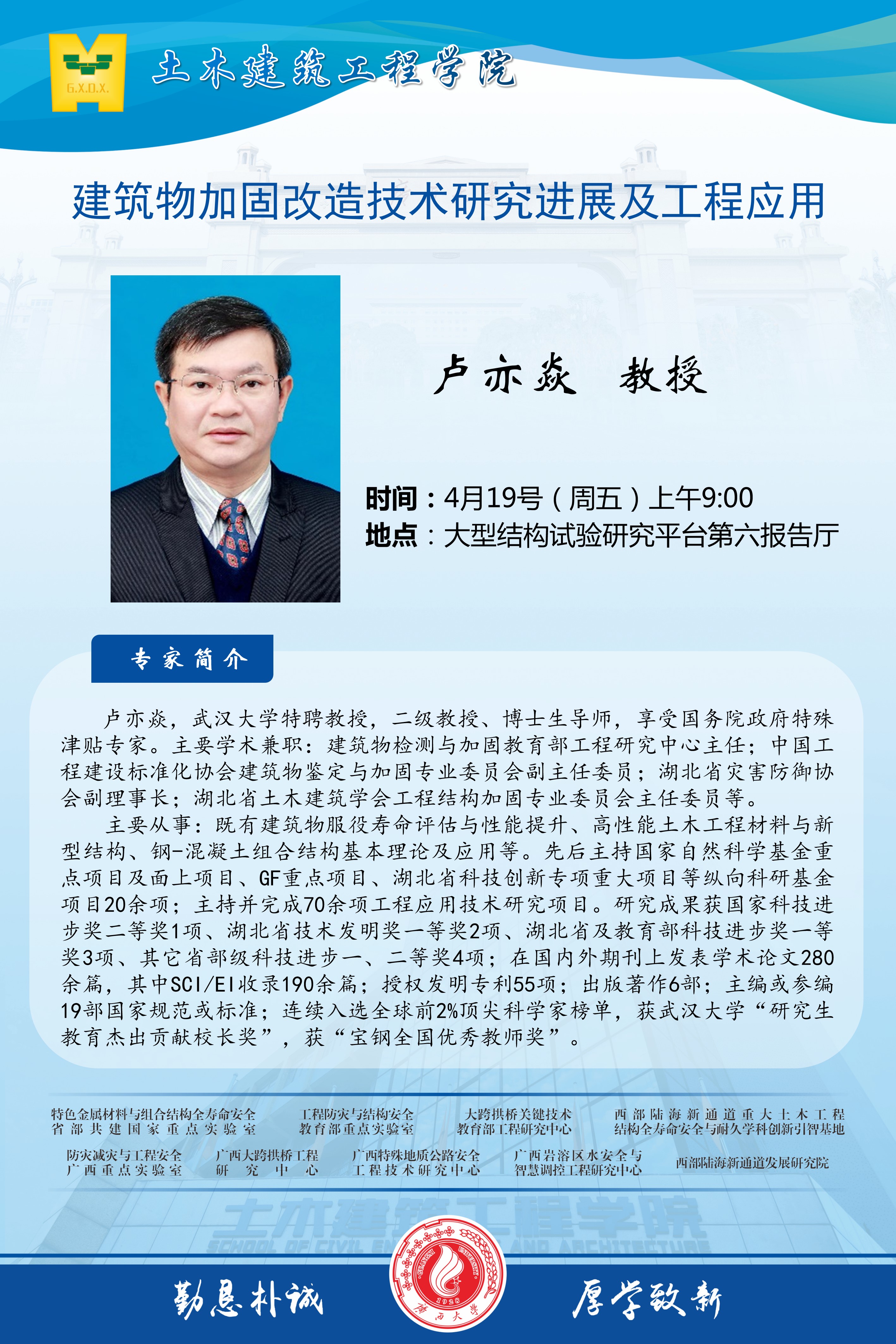 主讲人 卢亦焱 教授 地址 大型结构试验研究平台第六报告厅