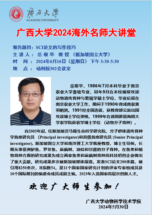 beat365正版唯一官方网站2024海外名师大讲堂:食用鱼的遗传学改良