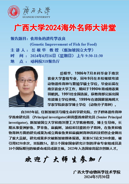 beat365正版唯一官方网站2024海外名师大讲堂:食用鱼的遗传学改良