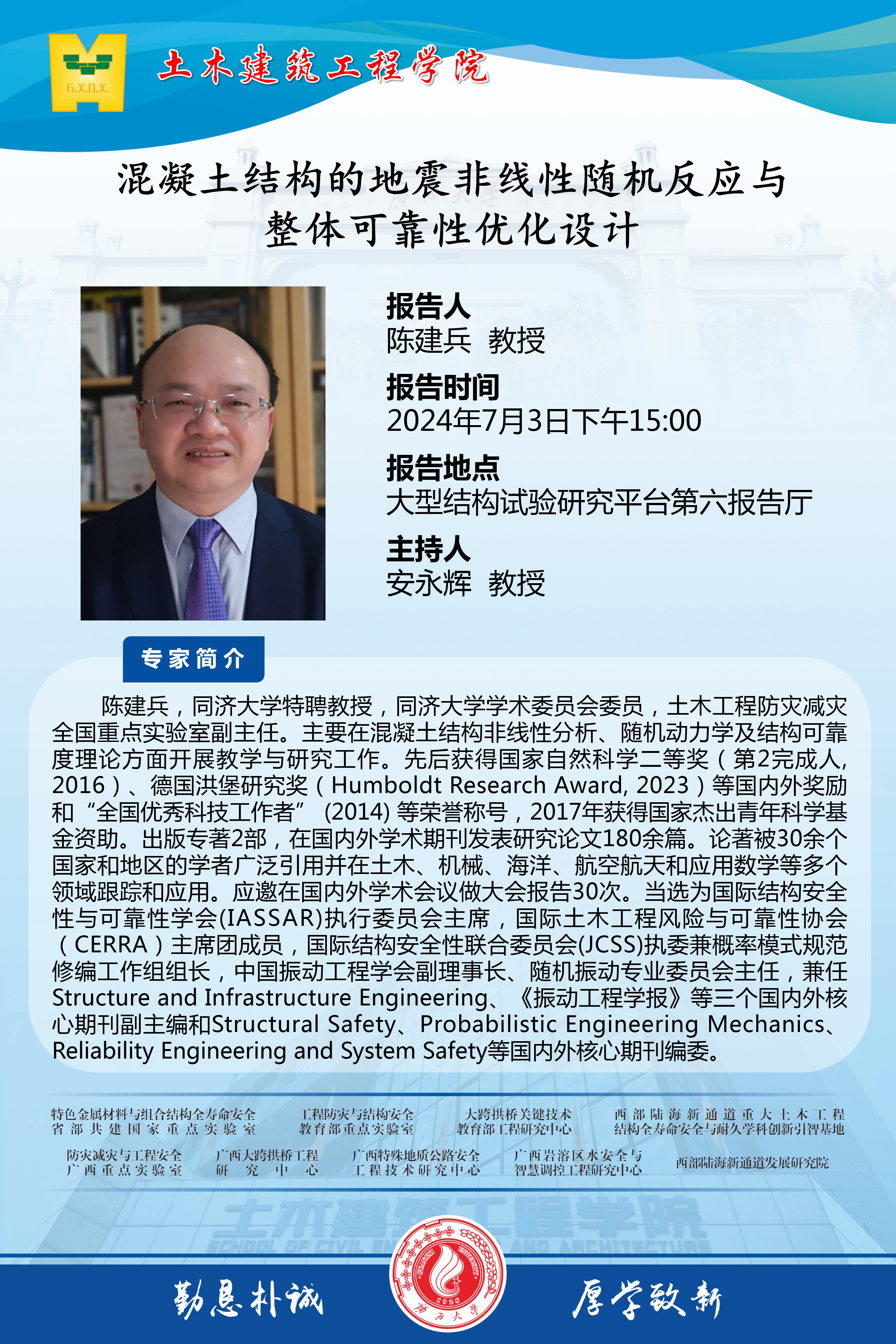 土木建筑工程学院学术报告:混凝土结构的地震非线性随机反应与整体可靠性优化设计