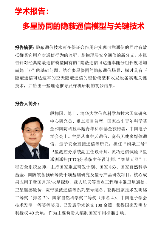 学术报告:多星协同的隐蔽通信模型与关键技术
