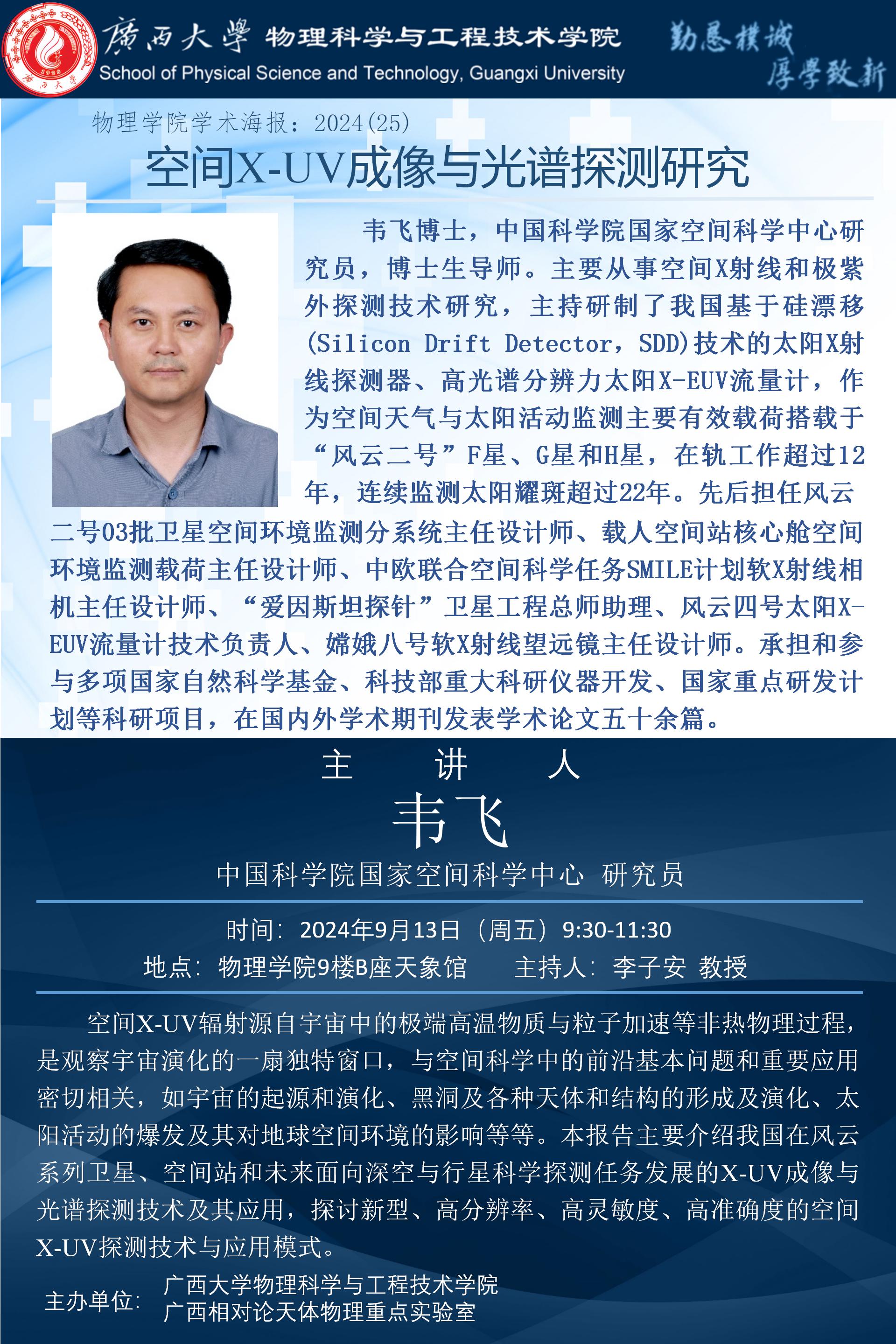 物理学院2024年学术报告之25:空间X-UV成像与光谱探测研究