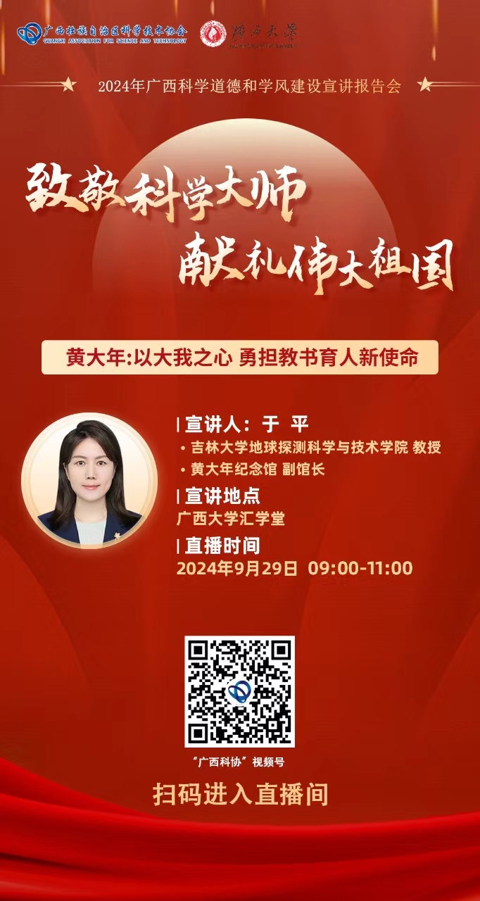 致敬科学大师,献礼伟大祖国——2024年广西科学道德和学风建设宣讲报告会
