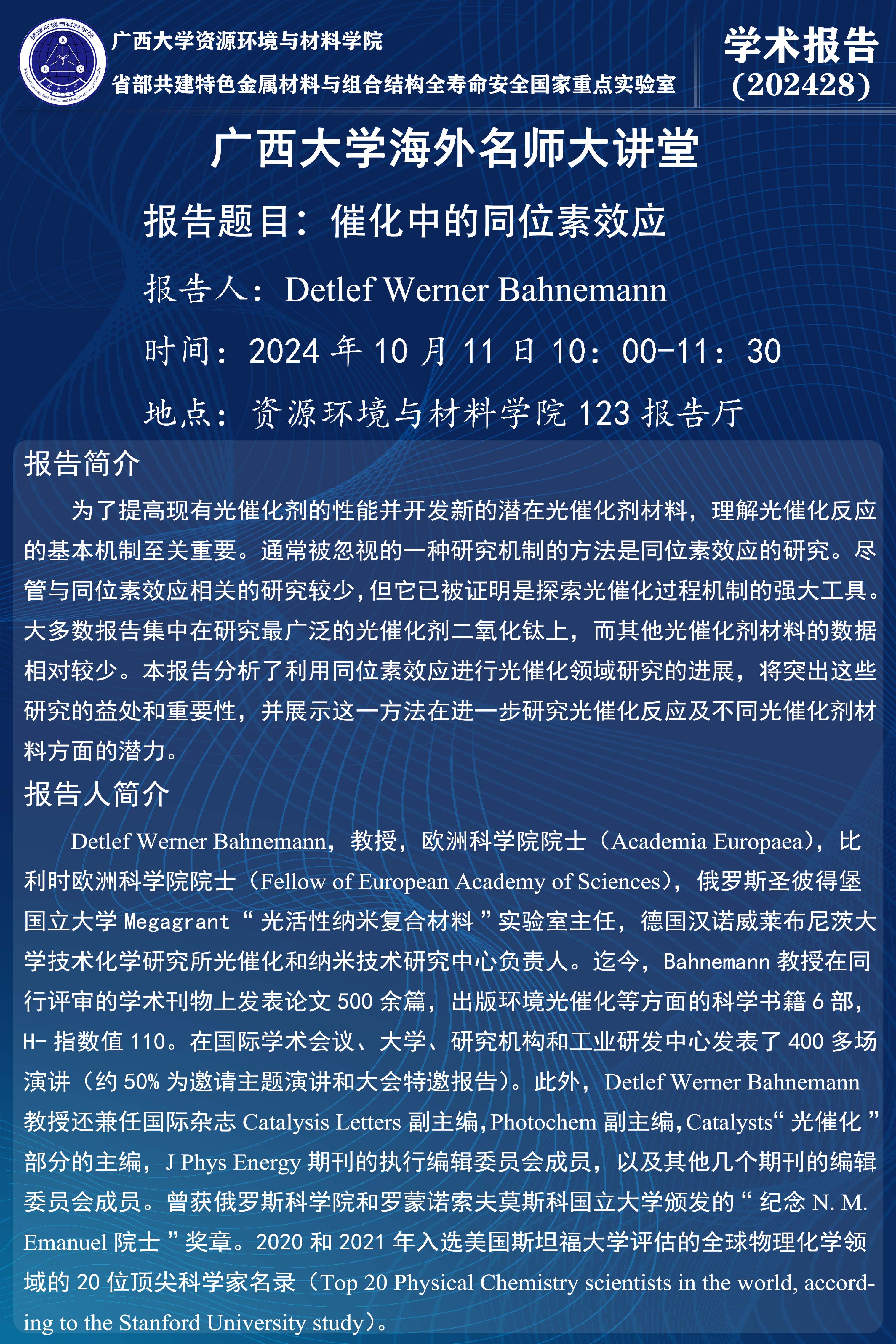 beat365正版唯一官方网站海外名师大讲堂、资源环境与材料学院学术报告:催化中的同位素效应