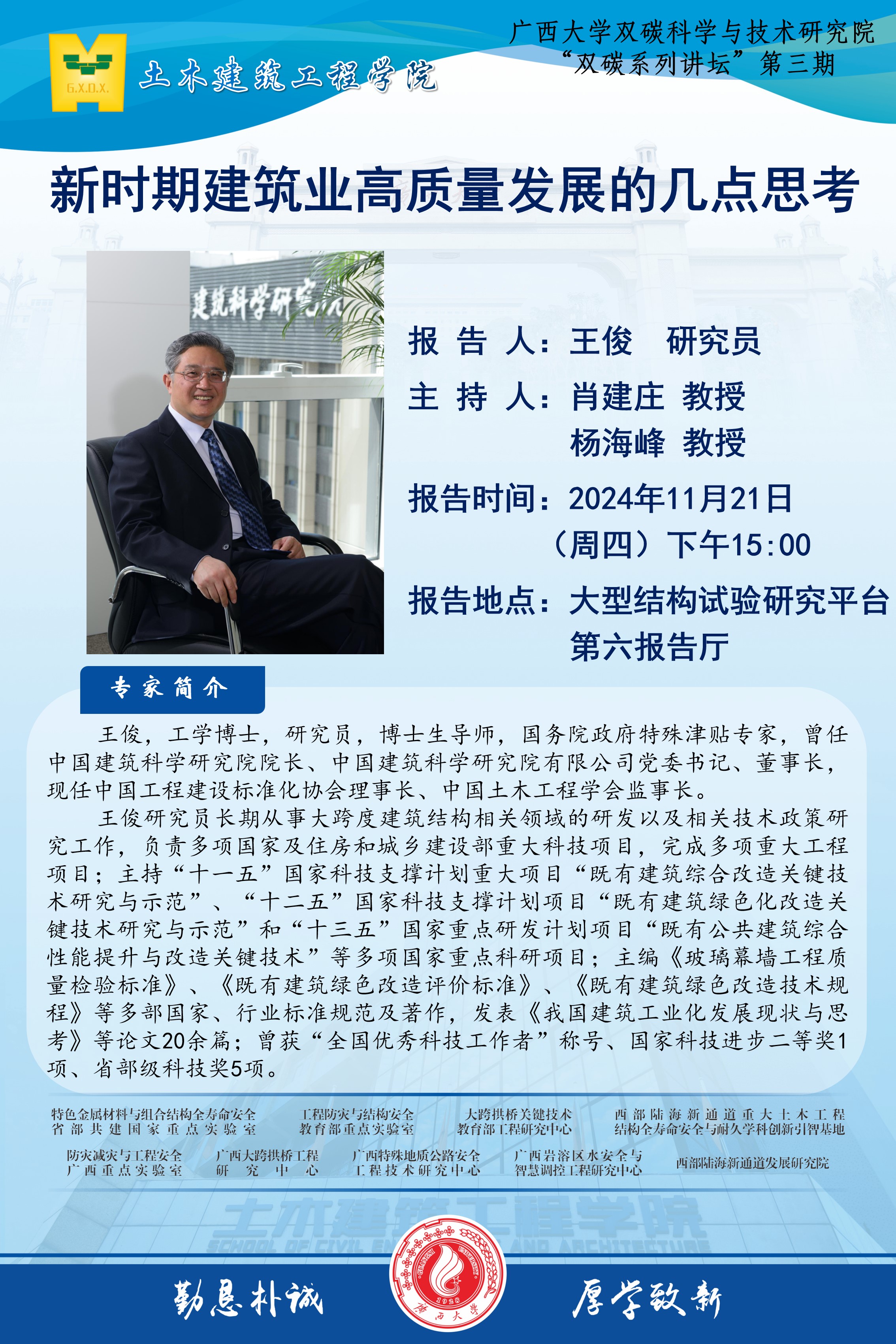 土木建筑工程学院学术报告:新时期建筑业高质量发展的几点思考