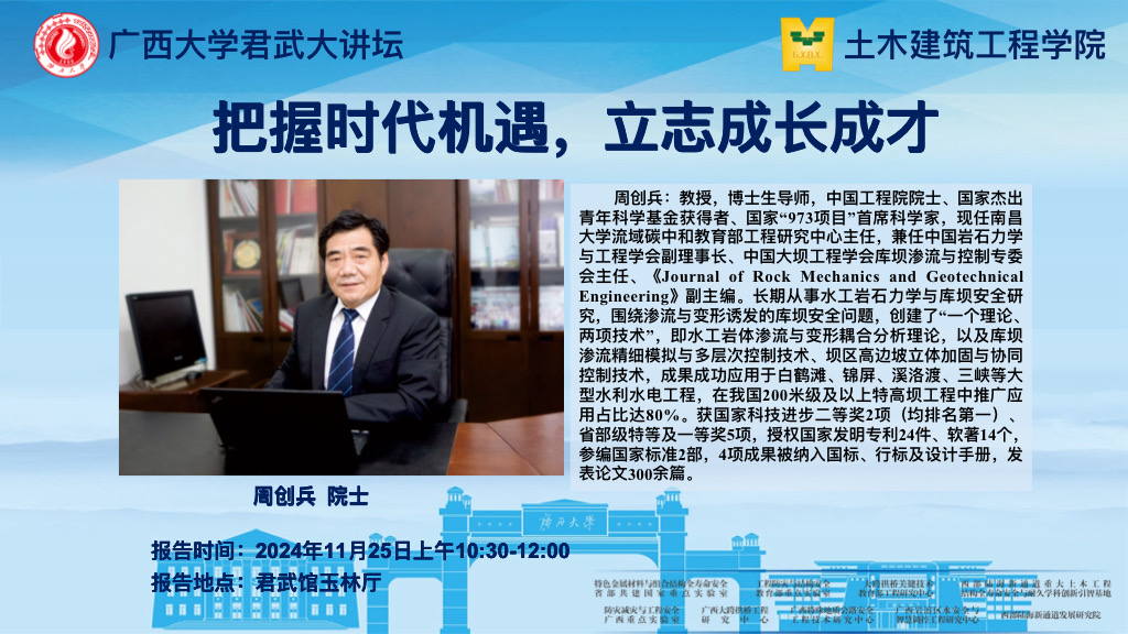 君武大讲坛、土建学院学术报告:把握时代机遇,立志成长成才