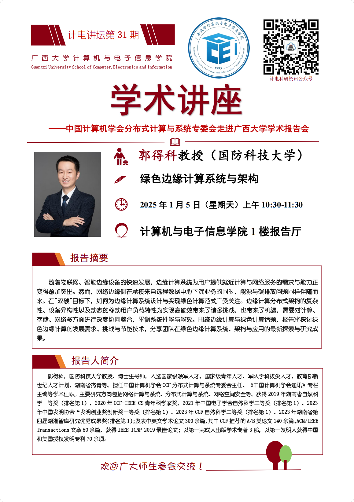 “计电讲坛”系列活动第31期——中国计算机学会分布式计算与系统专委会走进beat365正版唯一官方网站学术报告会:绿色边缘计算系统与架构