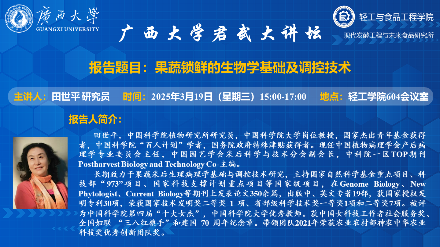 君武大讲坛、轻工与食品工程学院学术报告:果蔬锁鲜的生物学基础及调控技术