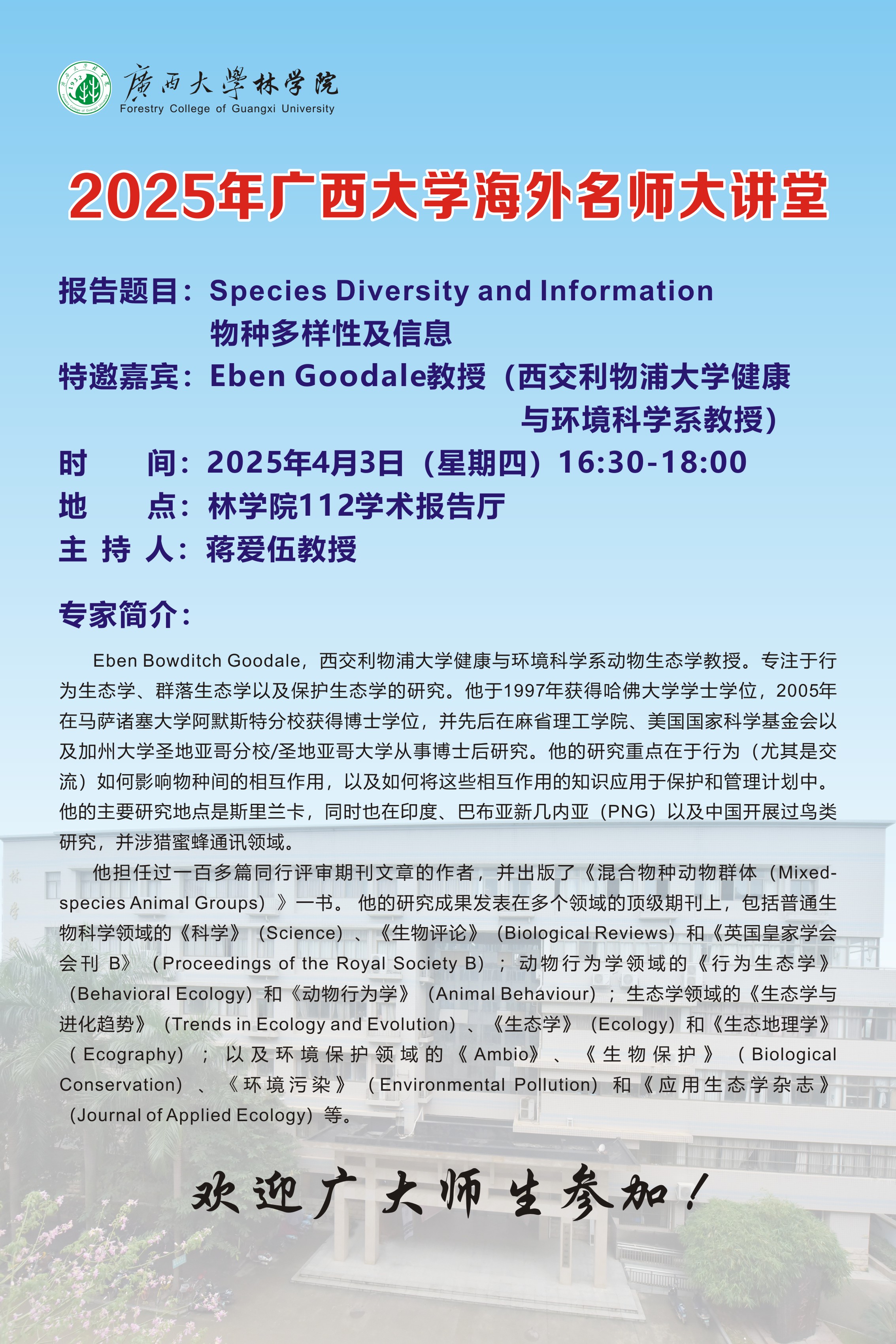 海外名师大讲堂:Species Diversity and Information 物种多样性及信息