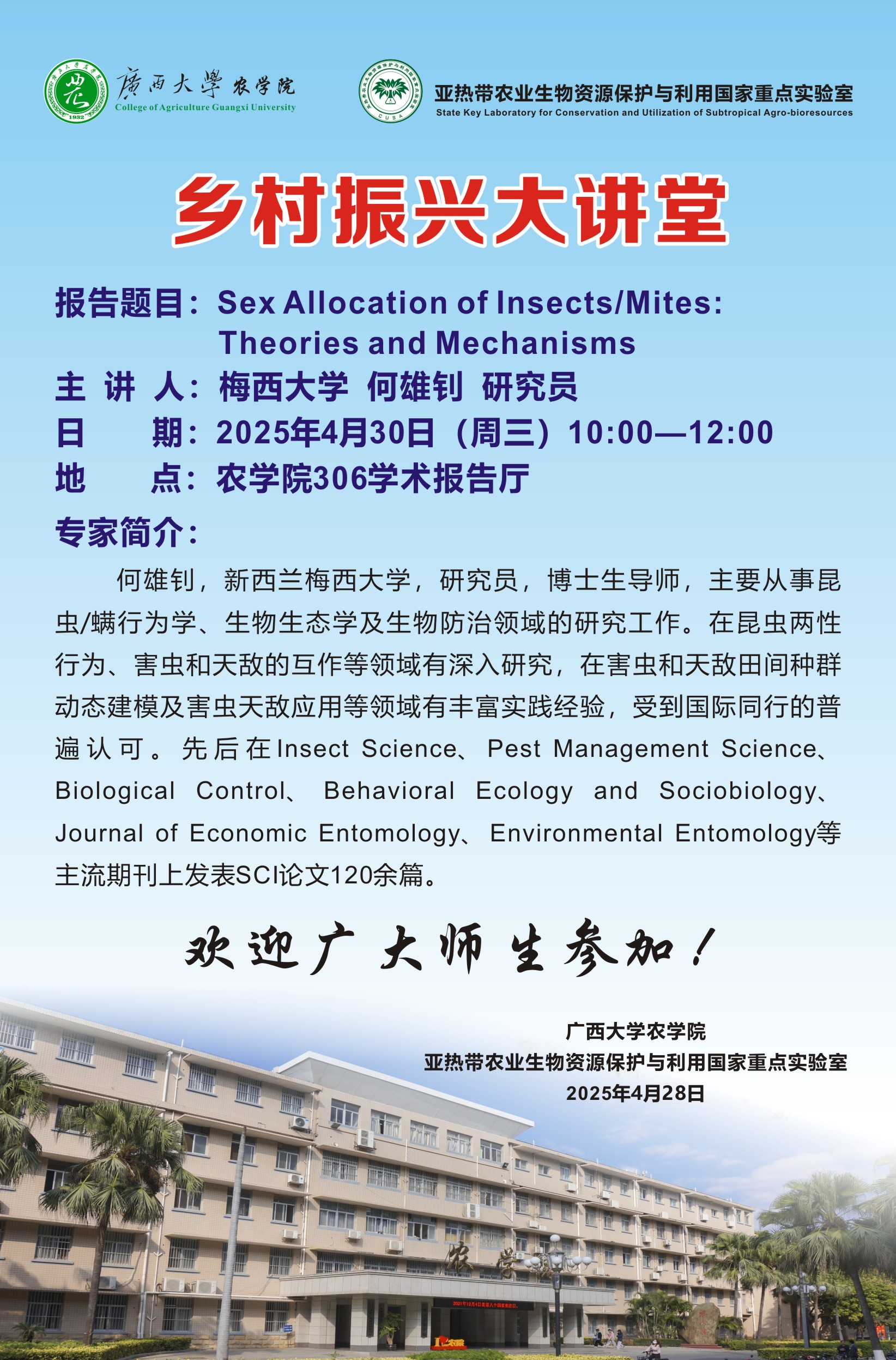 乡村振兴大讲堂:Sex Allocation of Insects/Mites: Theories and Mechanisms