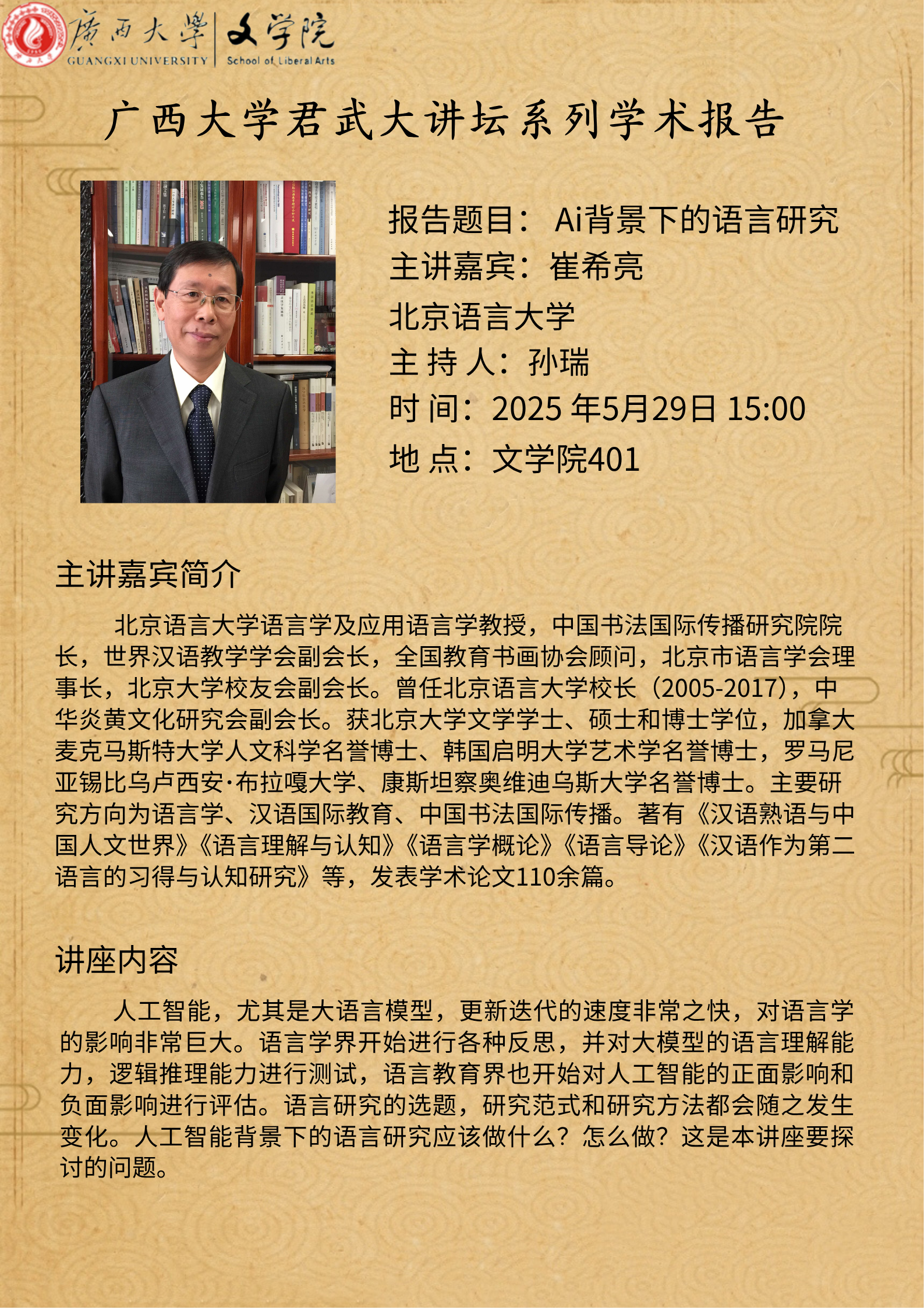 君武大讲坛:Ai背景下的语言研究