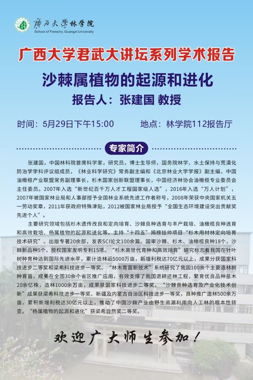 君武大讲坛:沙棘属植物的起源和进化