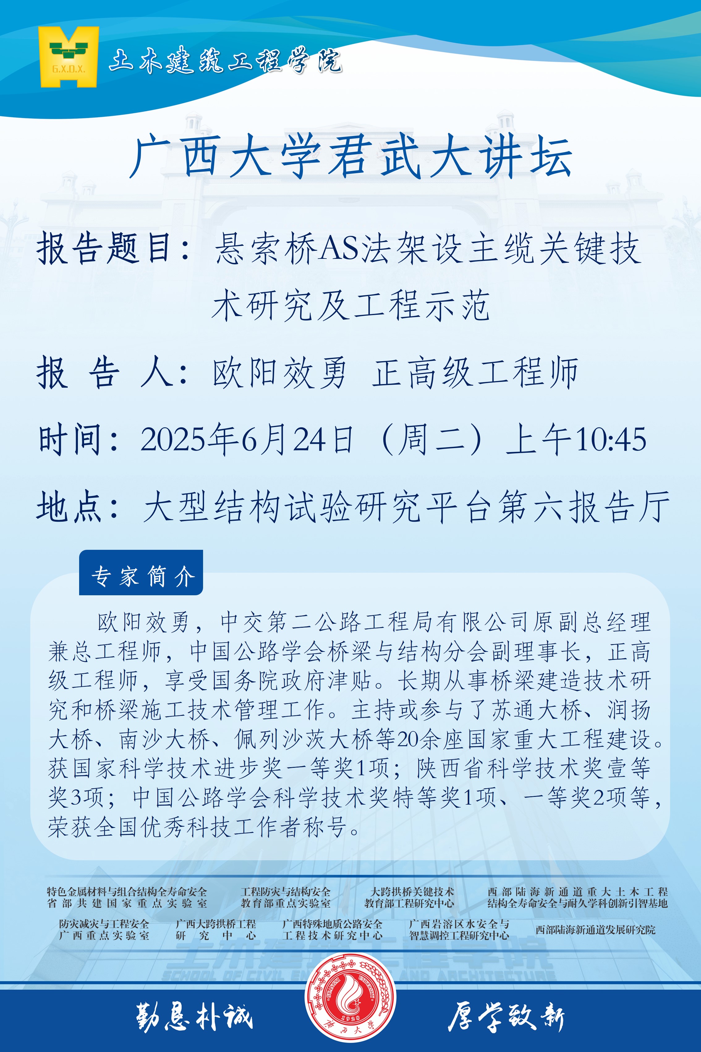 土木建筑工程学院学术报告:悬索桥AS法架设主缆关键技术研究及工程示范