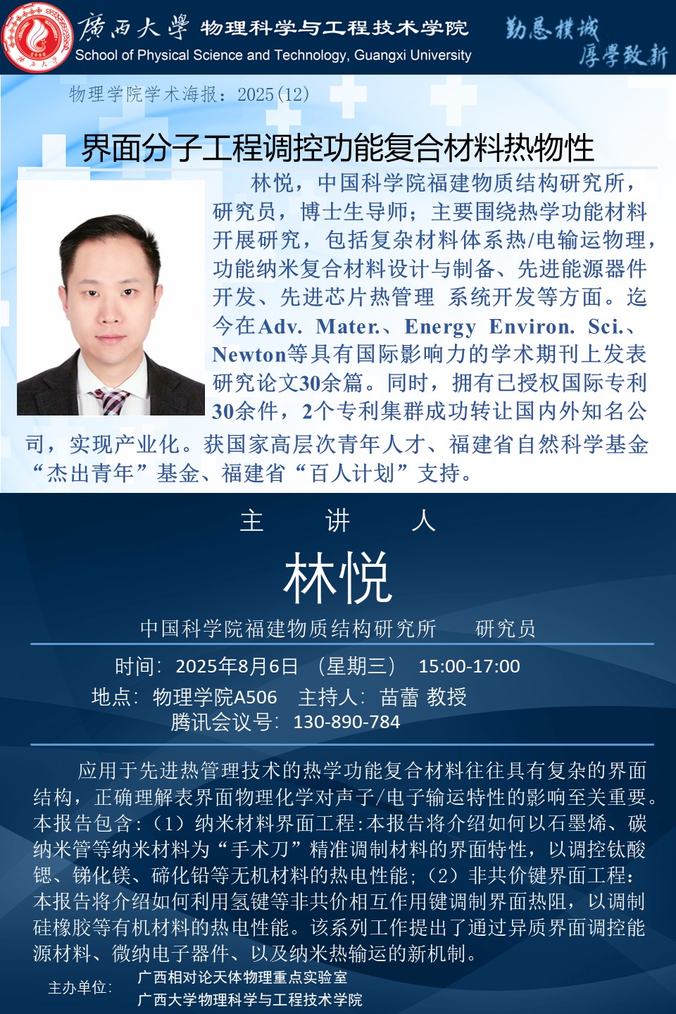 物理科学与工程技术学院学术报告:界面分子工程调控功能复合材料热物性
