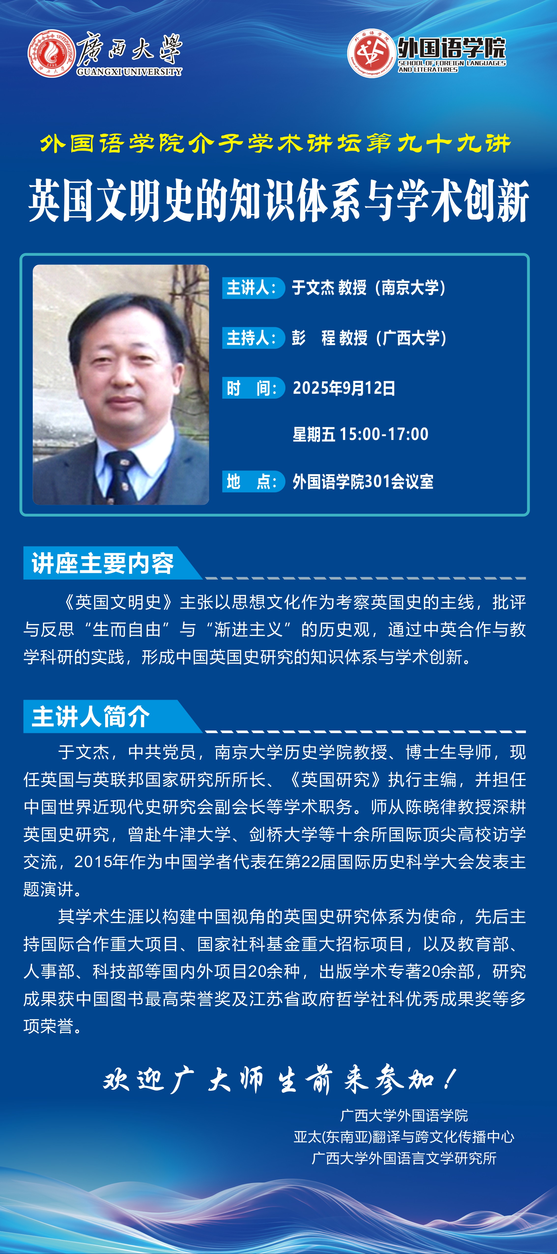 外国语学院学术报告:英国文明史的知识体系与学术创新