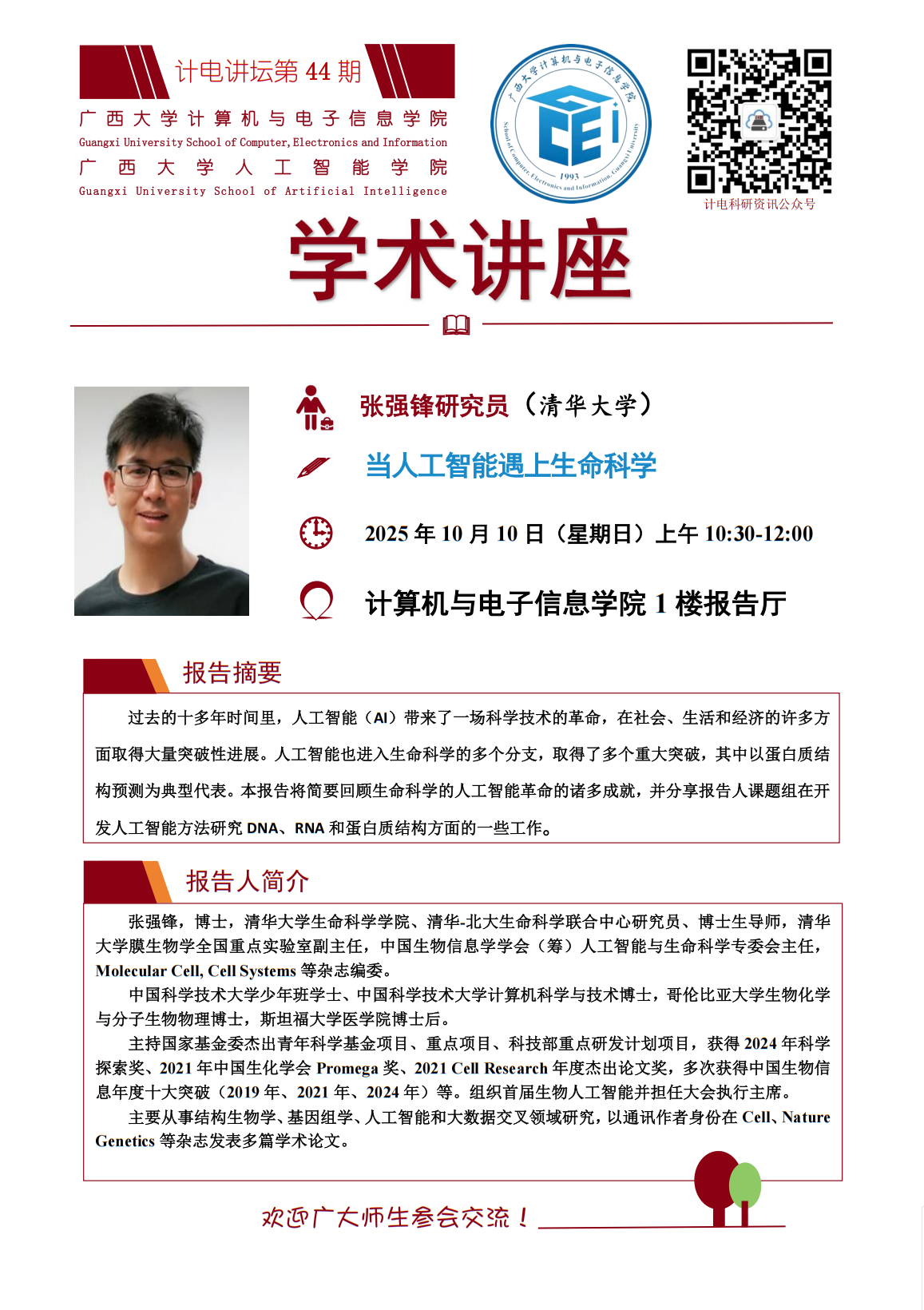 “计电讲坛”学术报告系列活动第44期:当人工智能遇上生命科学
